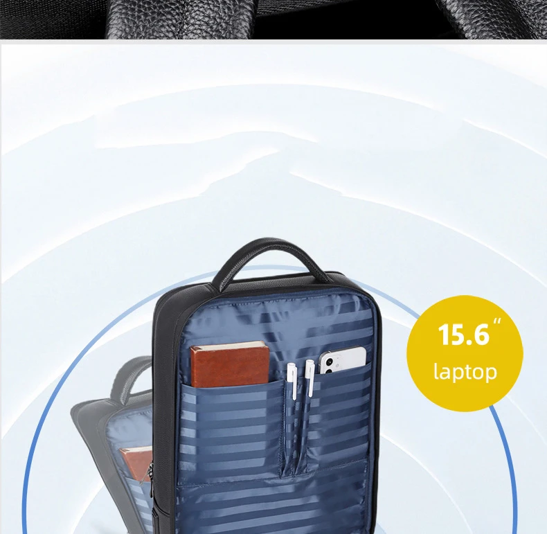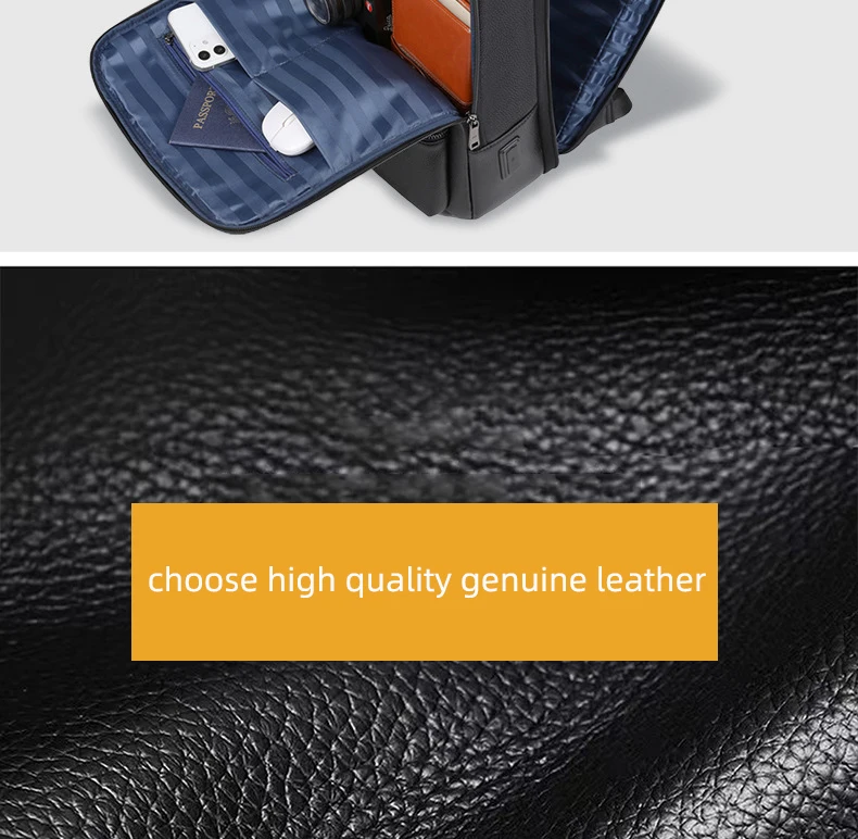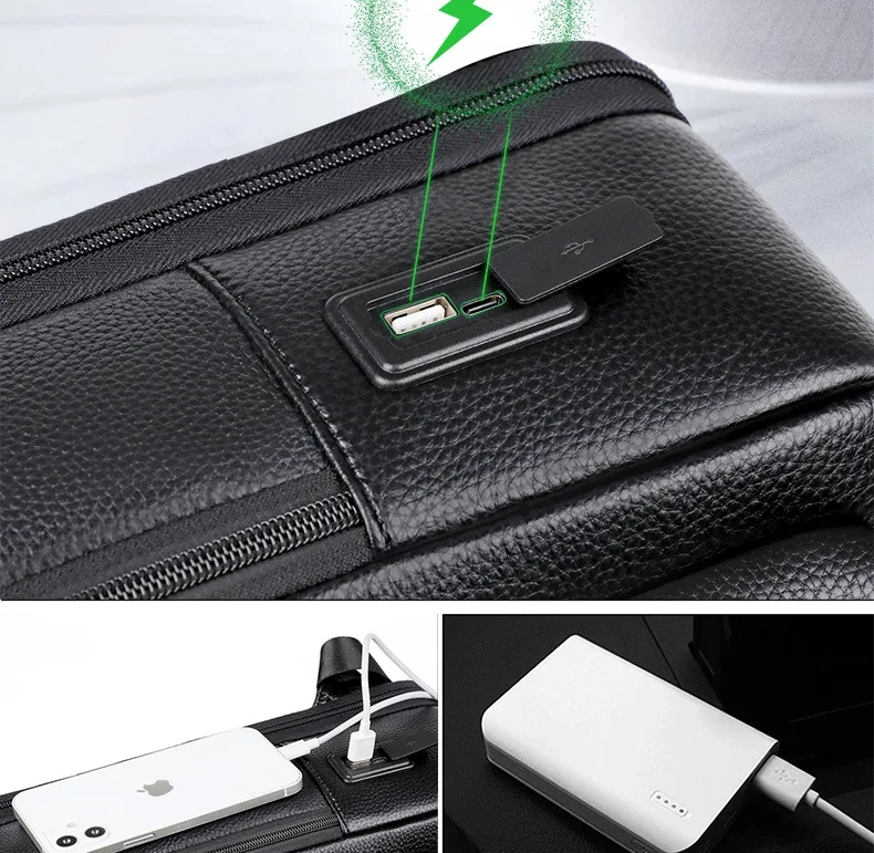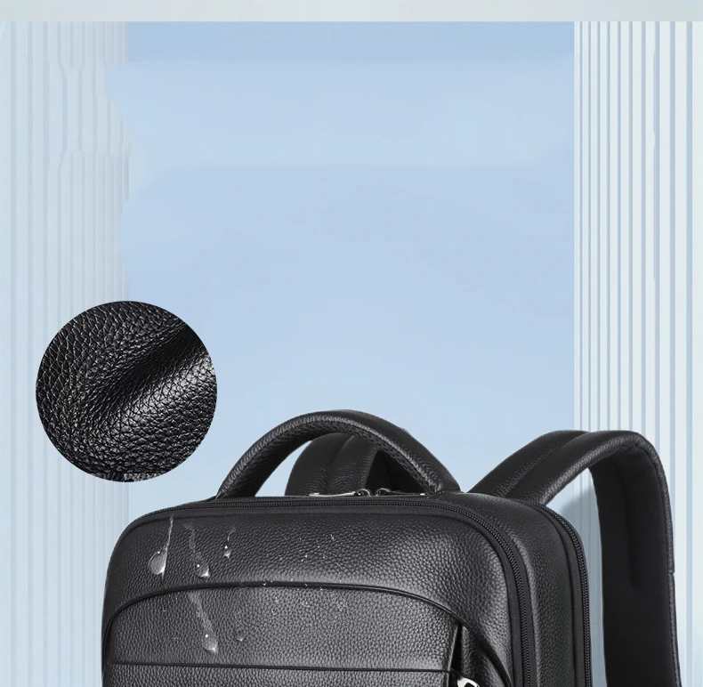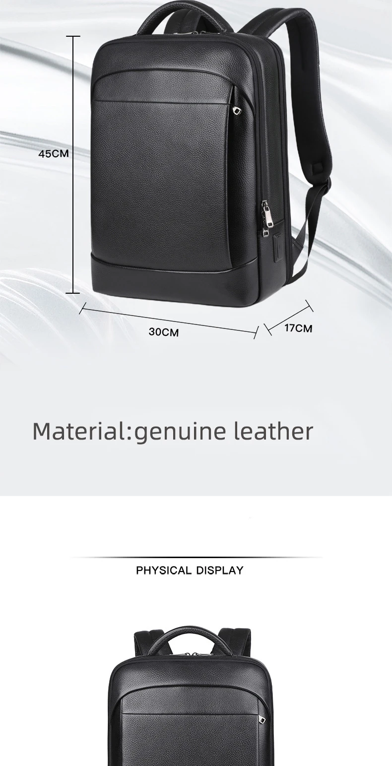 100% Genuine Leather Backpack For Men 15.6 Inch Laptop Backpack USB Charge Anti-Theft Waterproof Large Capacity Male Travel Bags