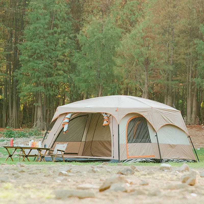 3-5 People Outdoor Luxury Camping Two Rooms One Hall Big Tent Camping Portable Equipment Sunscreen Tent Family Travel