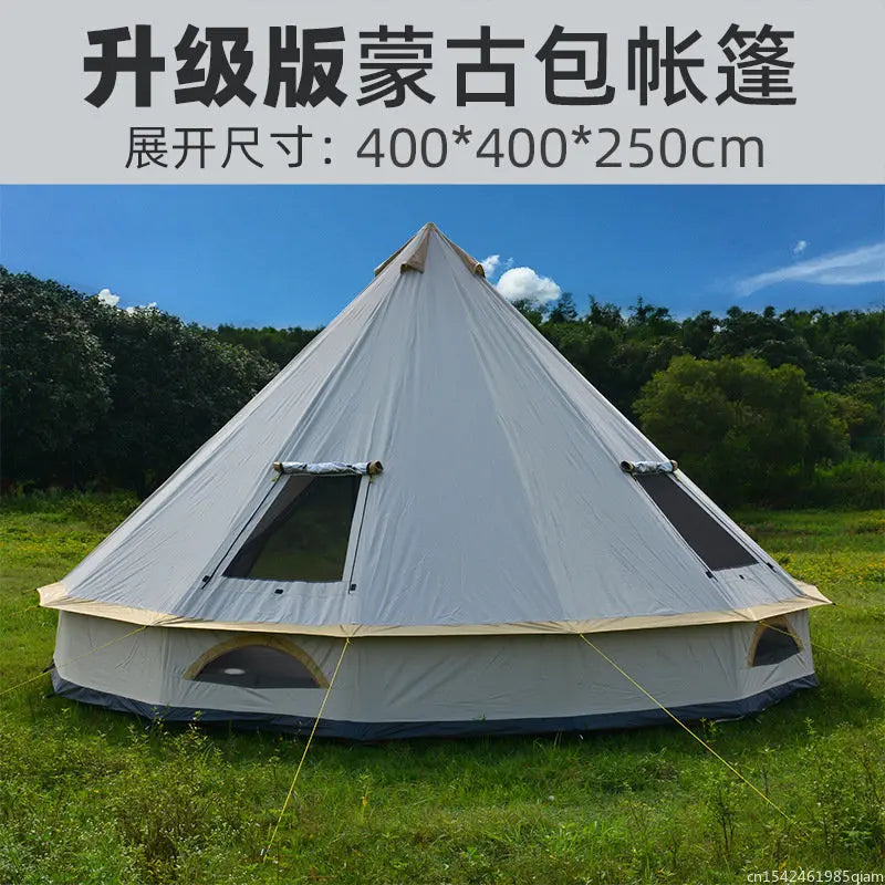 6-10Persons Luxury Mongolia Yurt Family Travel Hiking Antistorm Outdoor Camping Castle Tent Silver Coated UV Function