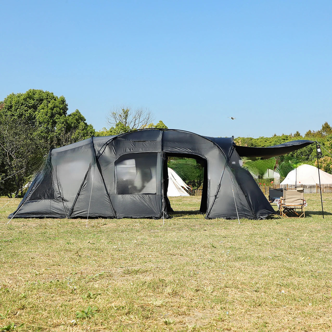 6-8 Person Luxury Black Glue Outdoor Camping Tunnel Family Tent Car SUV Beach Awning Team Hiking Canopy Mountaineering Shelter