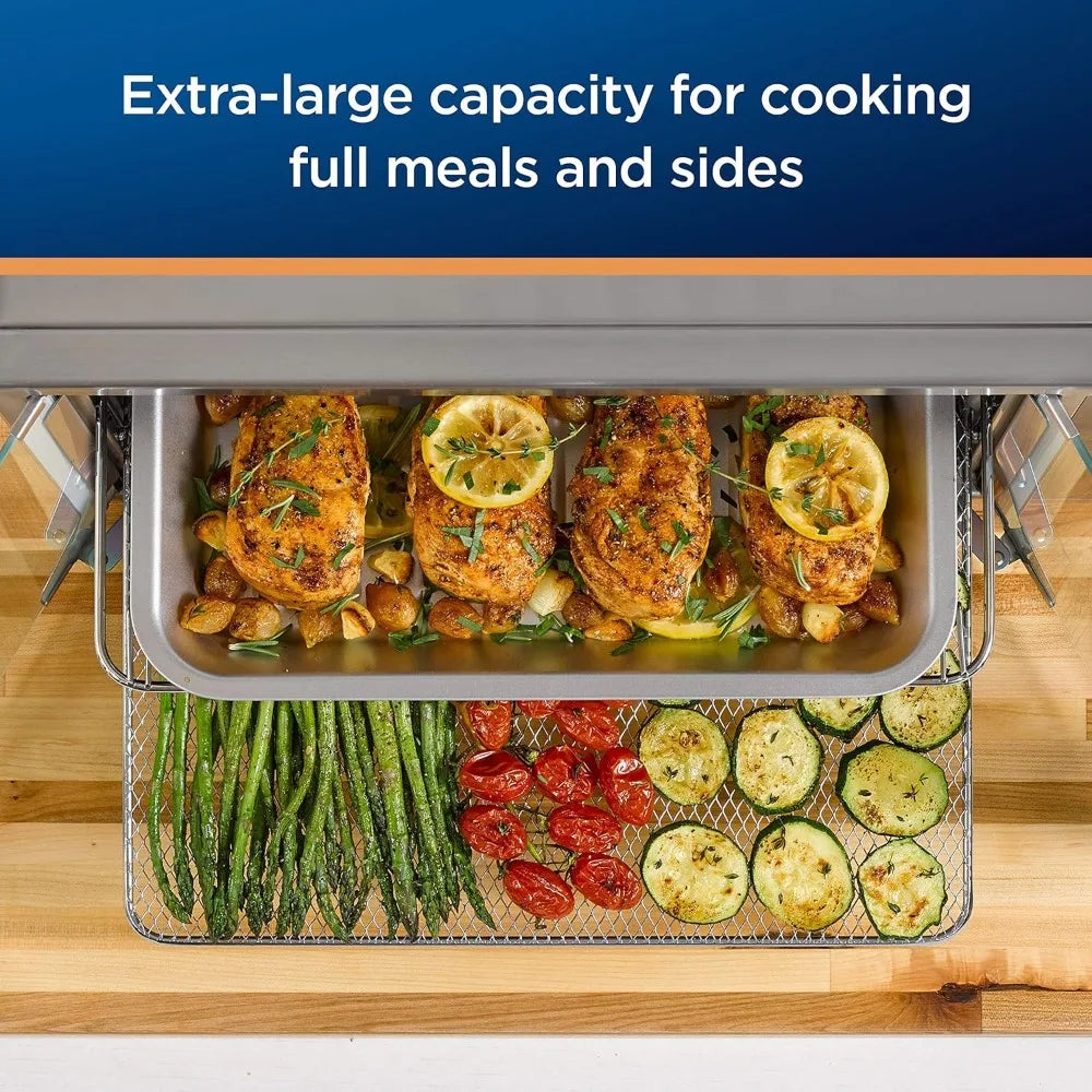 Air Fryer Oven, 10-in-1 Countertop Toaster Oven, XL Fits 2 16" Pizzas, Stainless Steel French Doors
