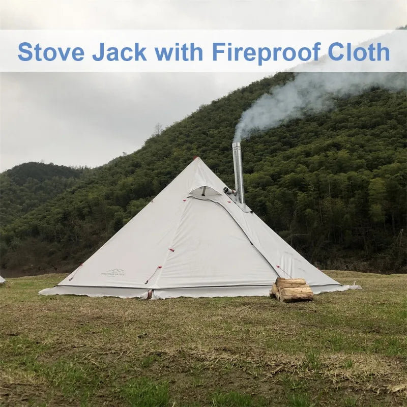 Stove jack can be opened for added air flow and bird watching, with a fireproof cloth to protect the tent from being burnt.