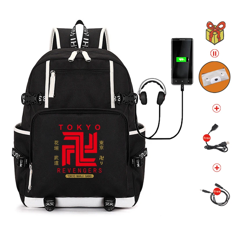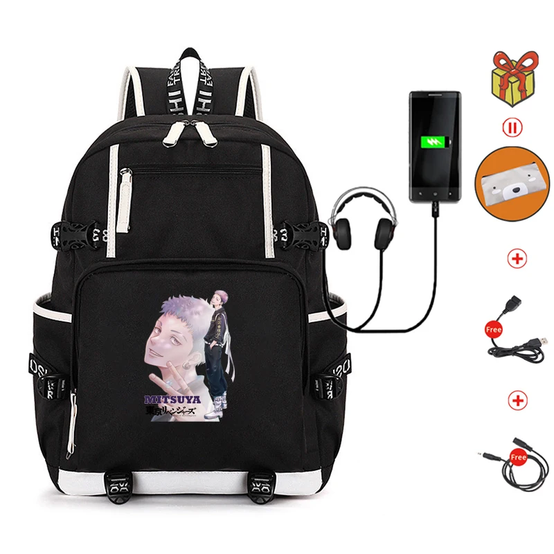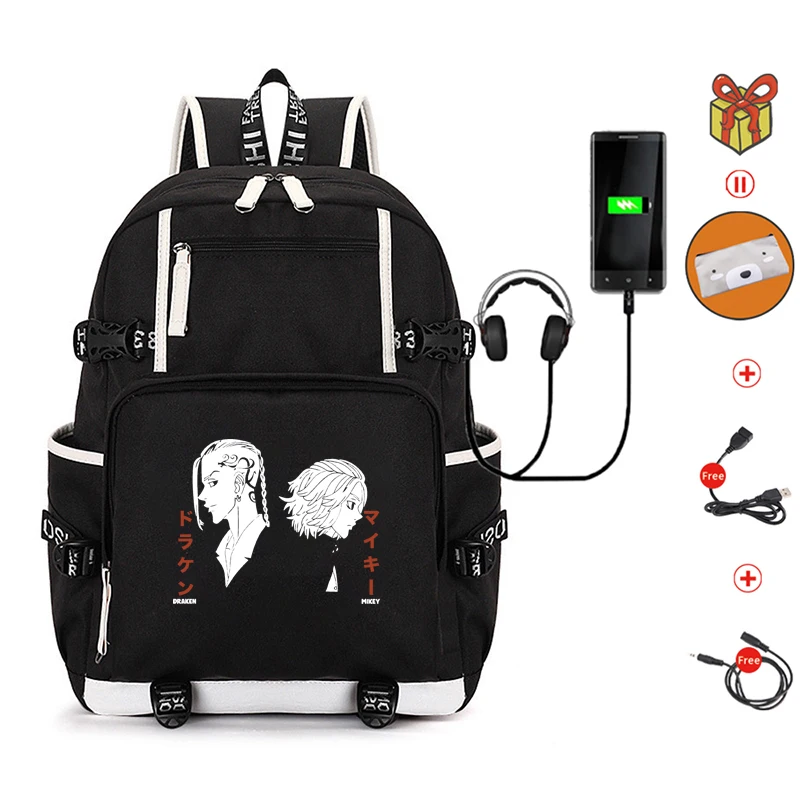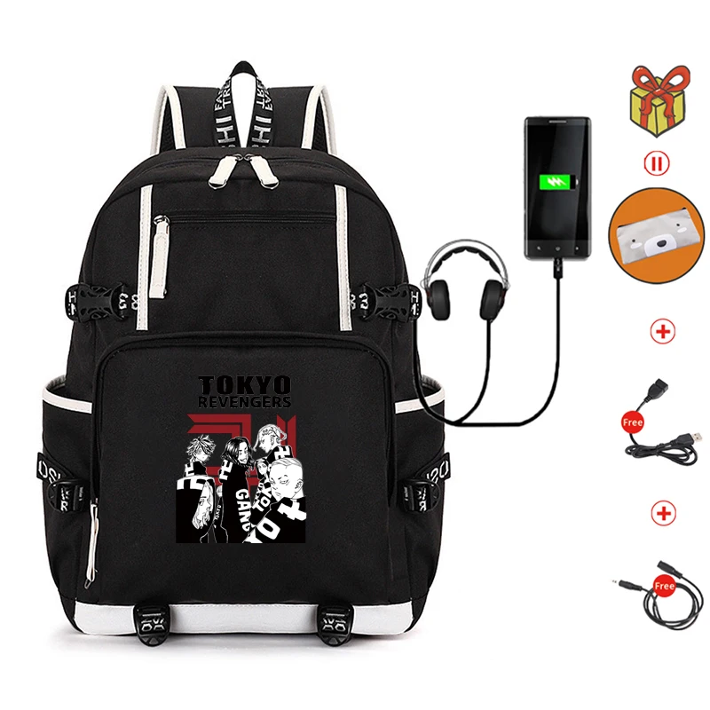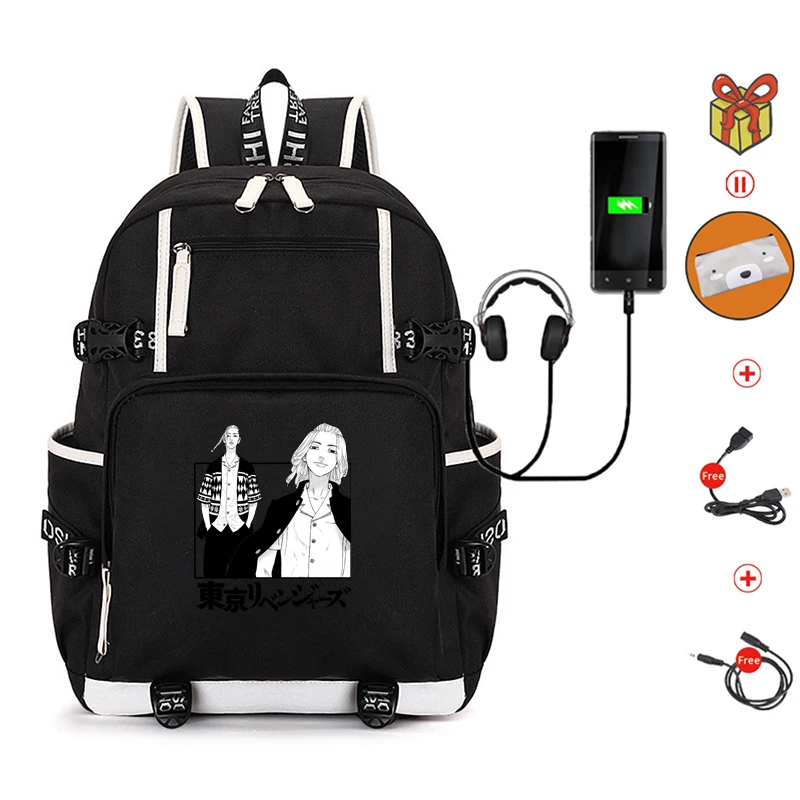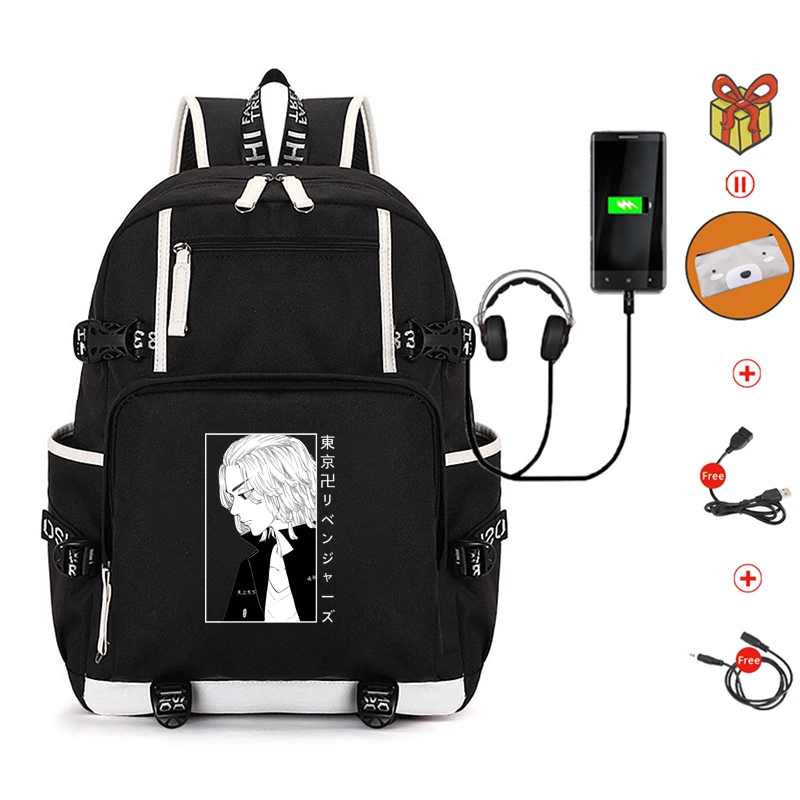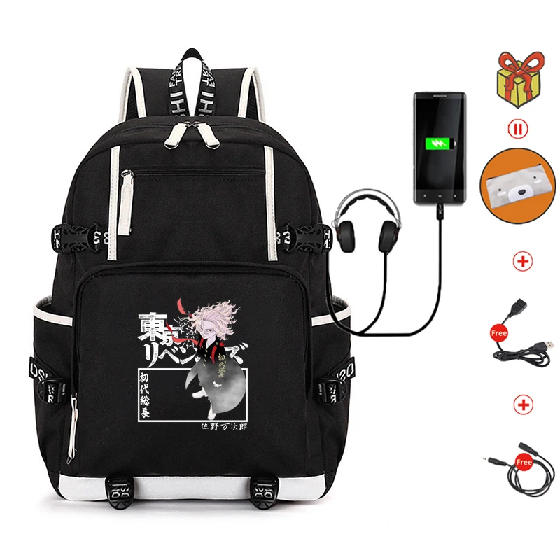 Anime Tokyo Revengers Print Backpack Large Capacity Student Schoolbags USB Charging Travel Backpack For Teenagers