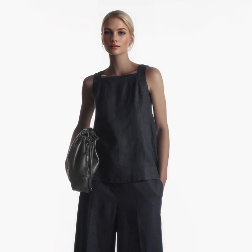 Cos Lris 2024 Summer Women's Clothing Casual Versatile Loose Back Bow Decorated Sleeveless Camisole Top