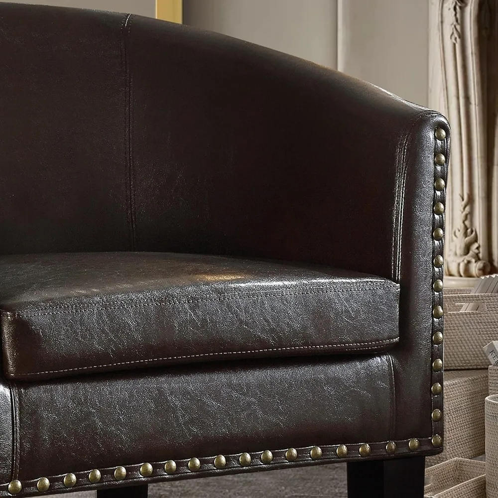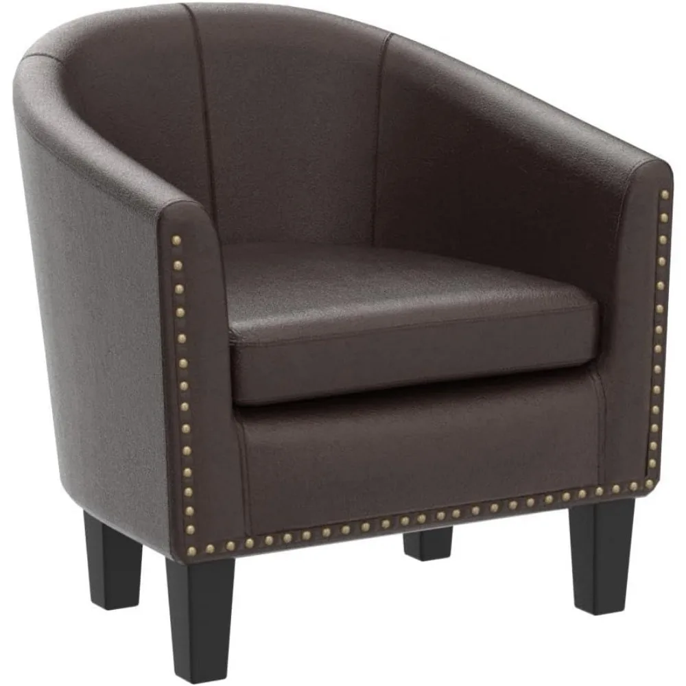 Duilio Club Style Barrel Armchair For Living Room Faux Leather Accent Chair, Leather Brown