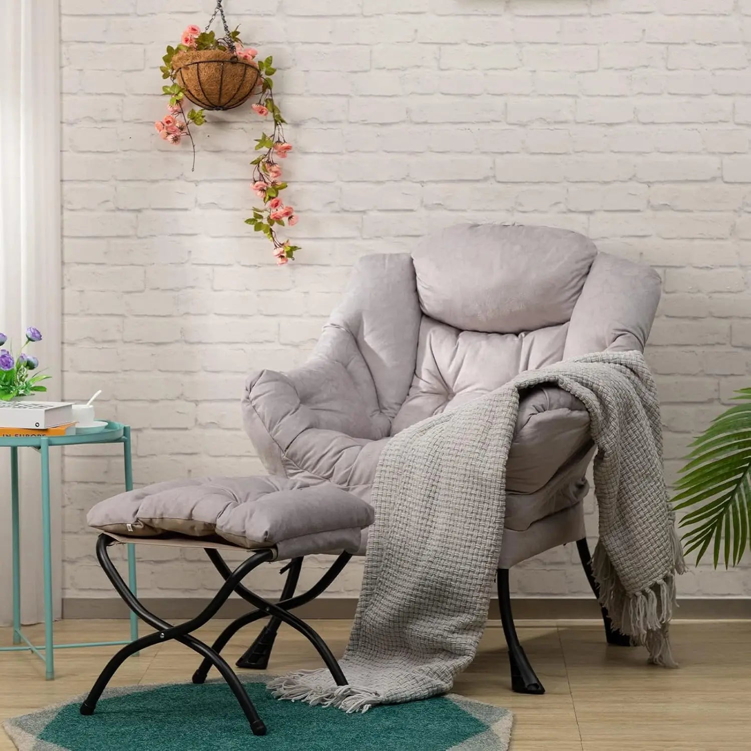 Fabric Lazy Chair with Foldable Ottoman,Accent Comfy Lounge Arm Chair and Folding Footrest Stool Set, Leisure Sofa Reading Chair