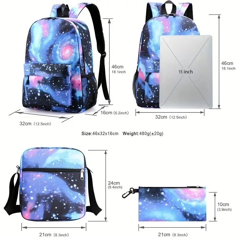 Fashion Backpack Girls Boys School Backpack Student Luminous USB Charge School Bags Teenager Schoolbag Bagpack Rucksack 3PCS