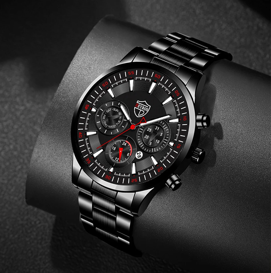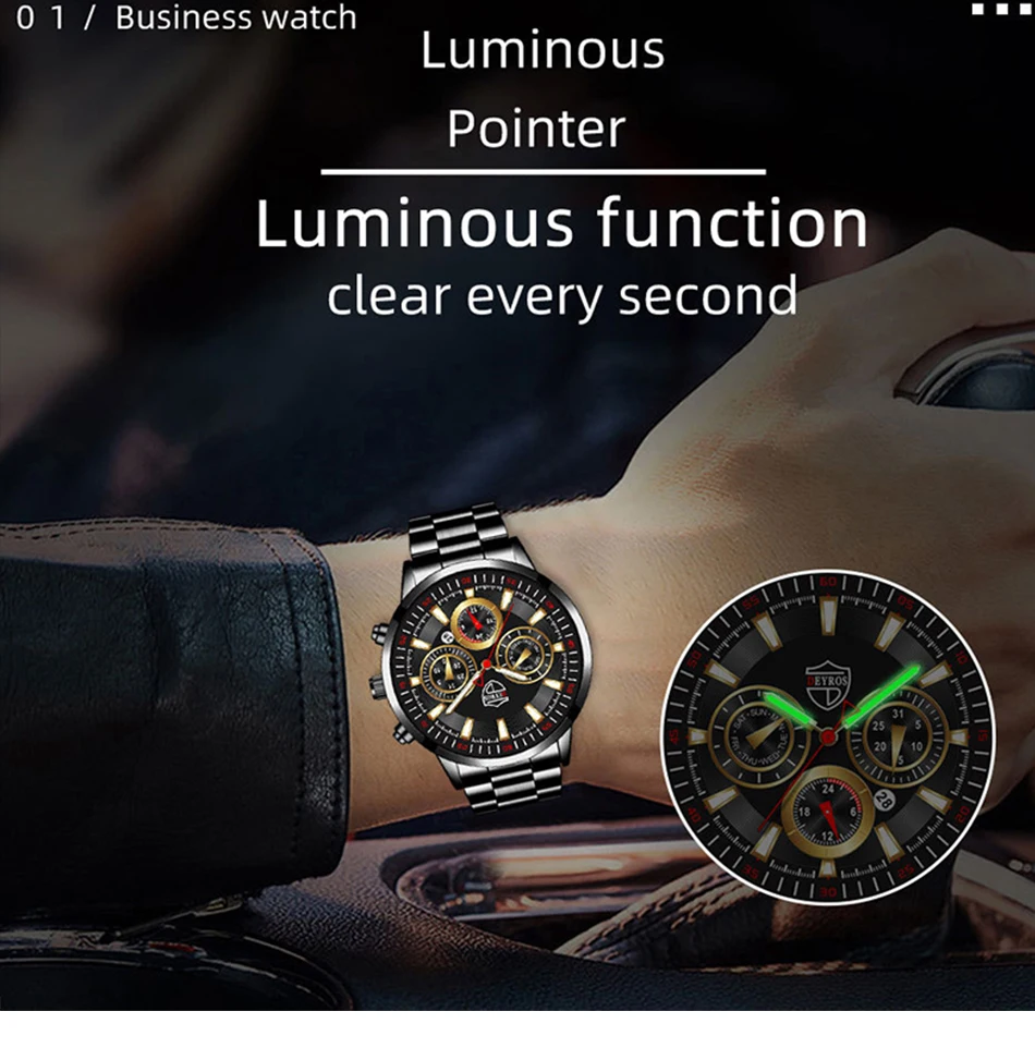 Fashion Men's Watches Business Stainless Steel Quartz Wrist Watch Male Casual Date Luminous Leather Bracelet Clock