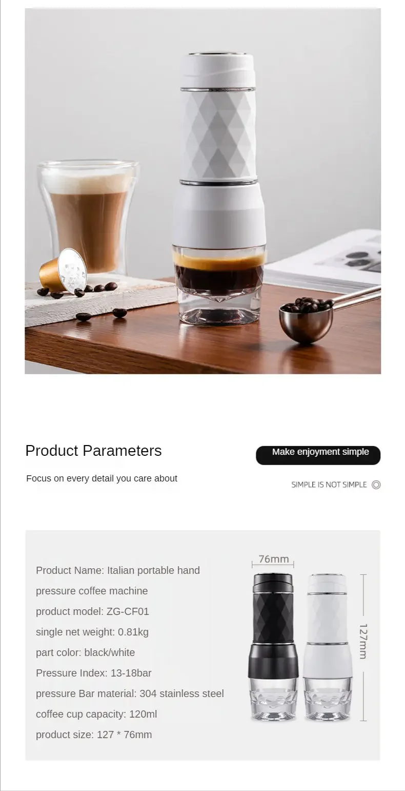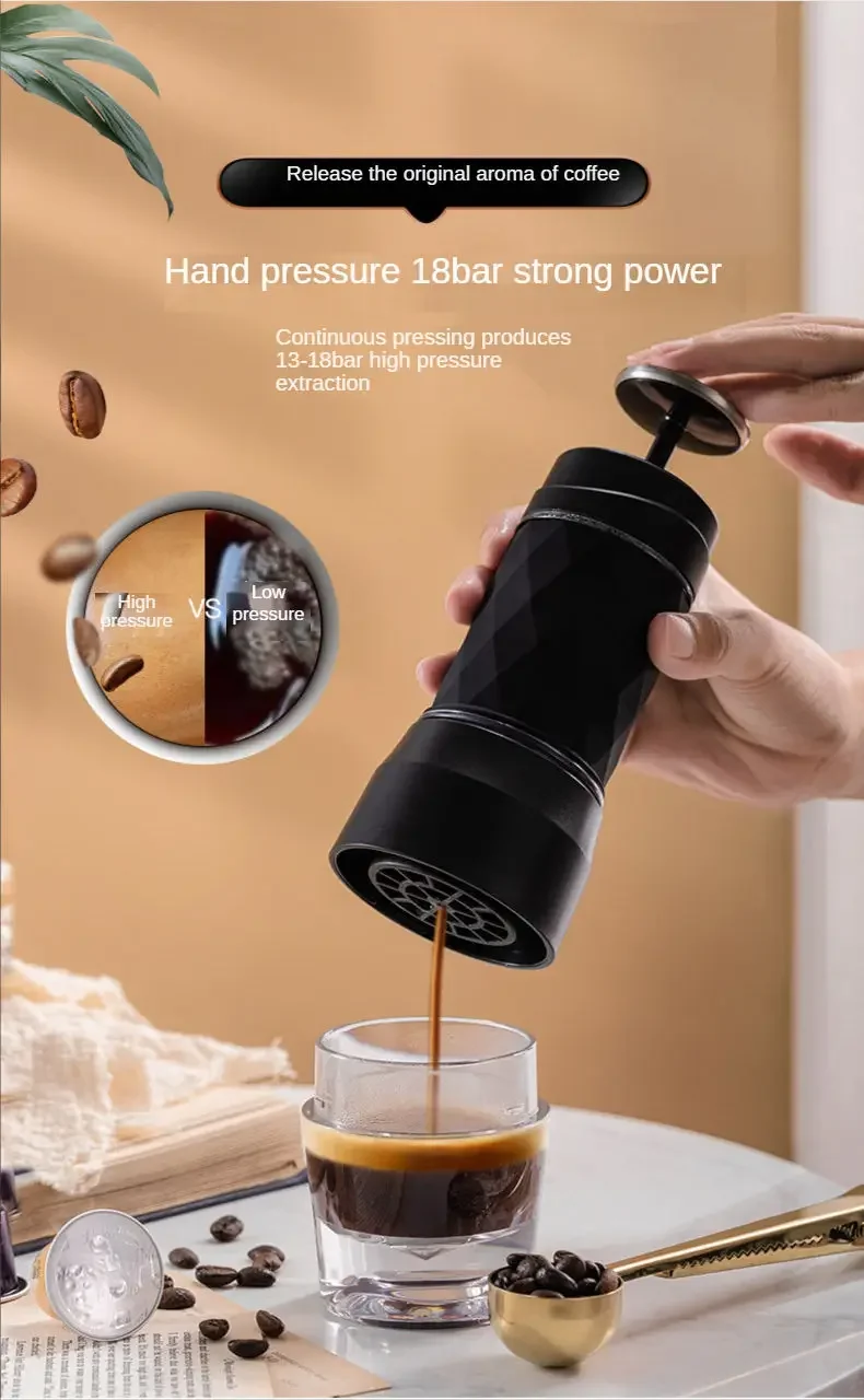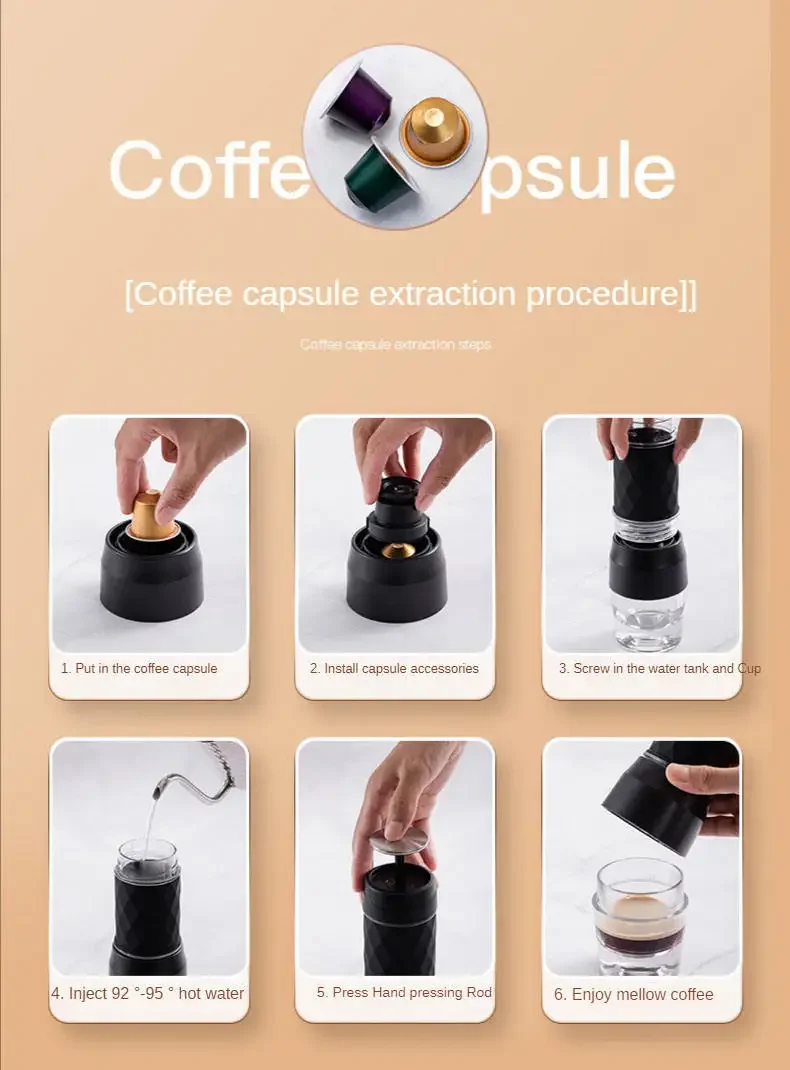 • Portable and Compact :The Hand Pressure Manual Mini Espresso Capsule Coffee Machine Cup Portable Espresso Mini Coffee Maker is small and lightweight, making it easy to carry around wherever you go.