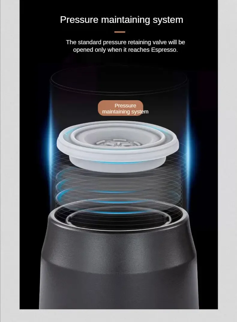 【18 Bar Advanced Pumping Technology & Leak prevention Technology】Thanks to the advanced pumping technology, the Portable Espresso Machine is capable of reaching 18 Bar stable pressure during extraction.