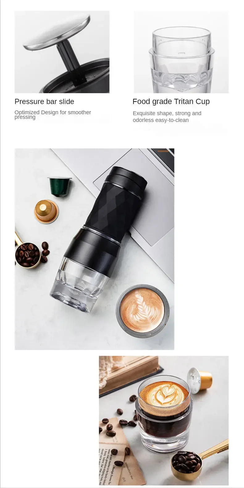 • Portable and Compact :The mini espresso capsule coffee machine is small and lightweight, making it easy to carry around for travel or on-the-go use.