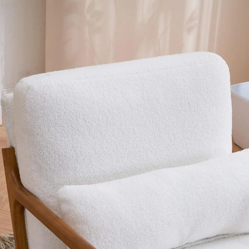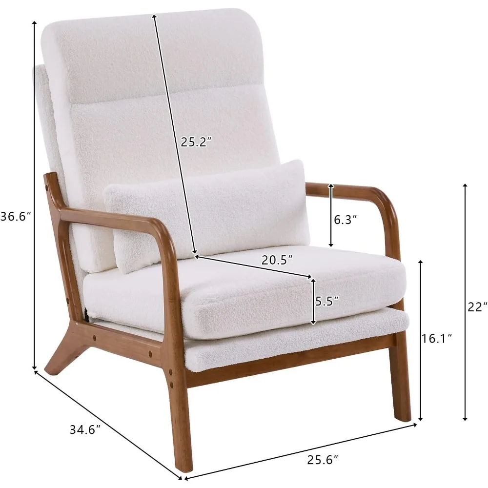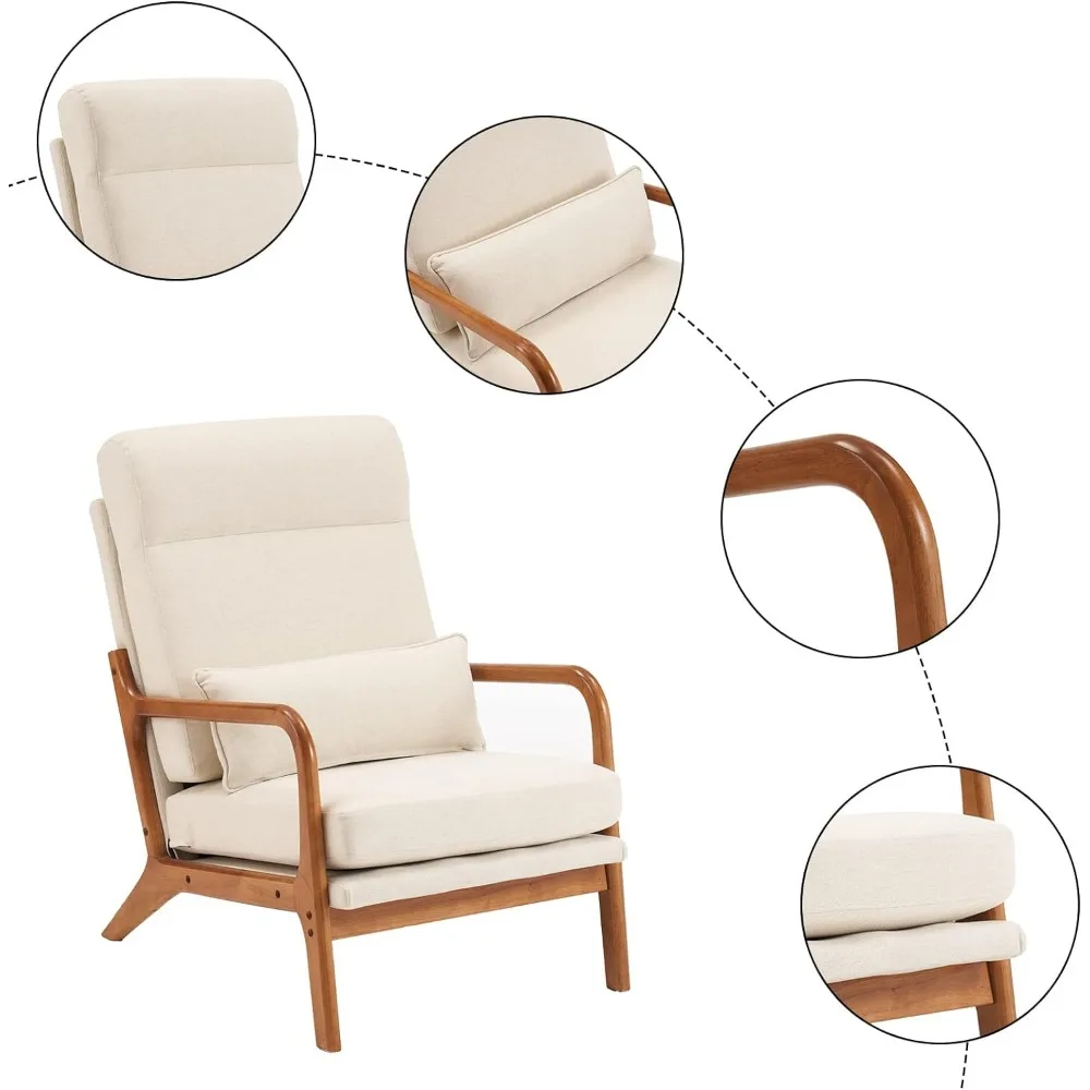 - MID-CENTURY CHARMING - Designed with curved arms and flared legs, this accent chair with extra pillow is full of mid-century style charming; The beige color of fabric with natural wood color of frame is a nice combination, which is suitable for any style of your home decorations