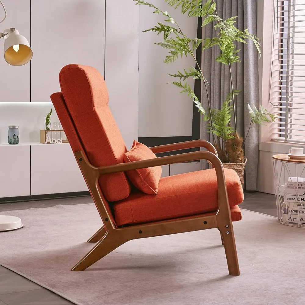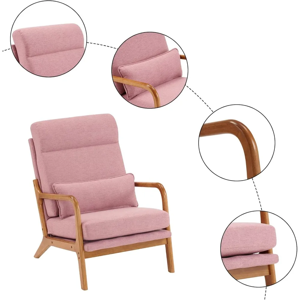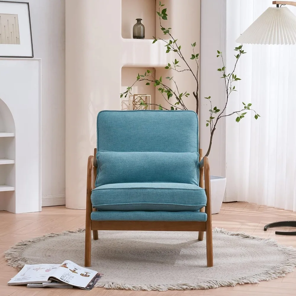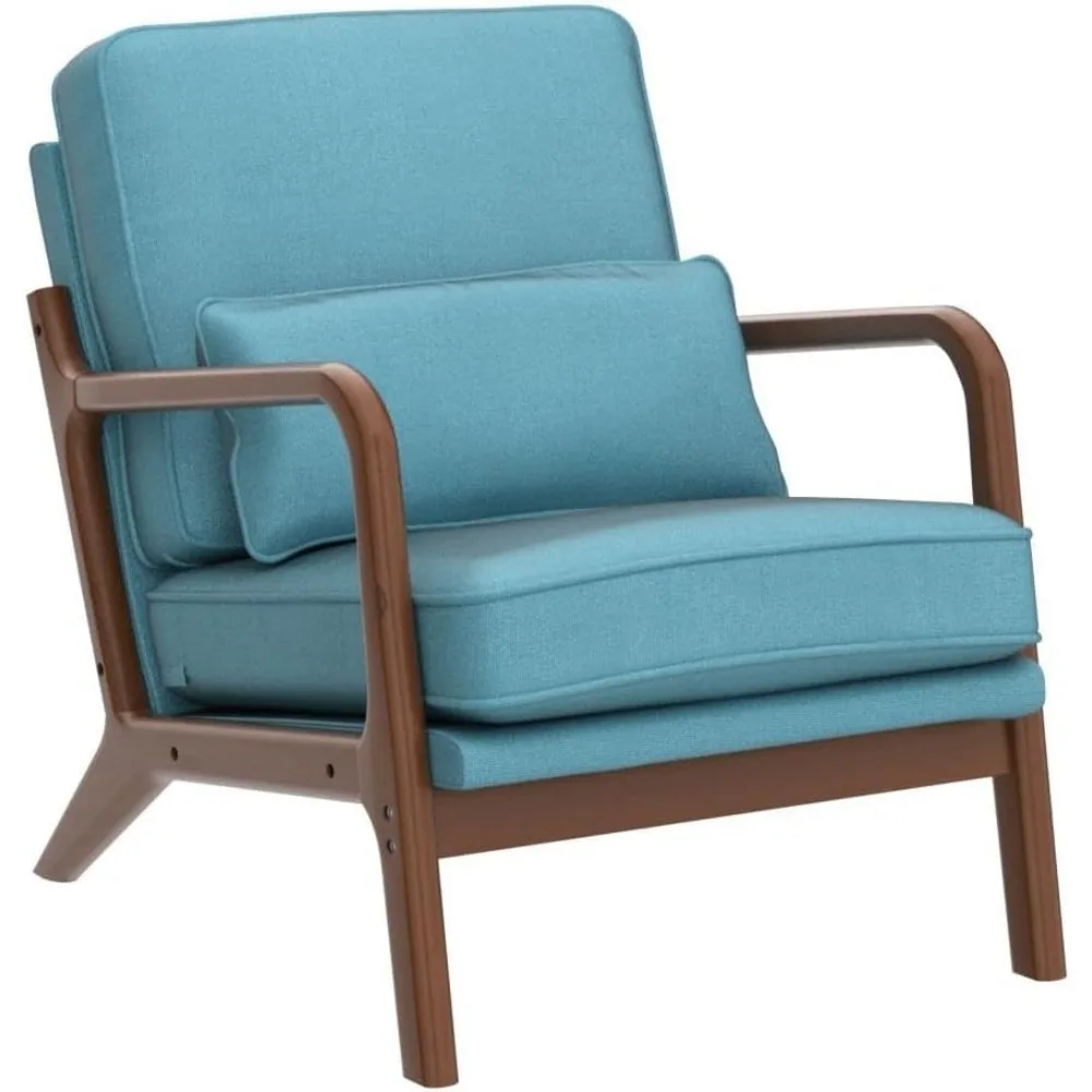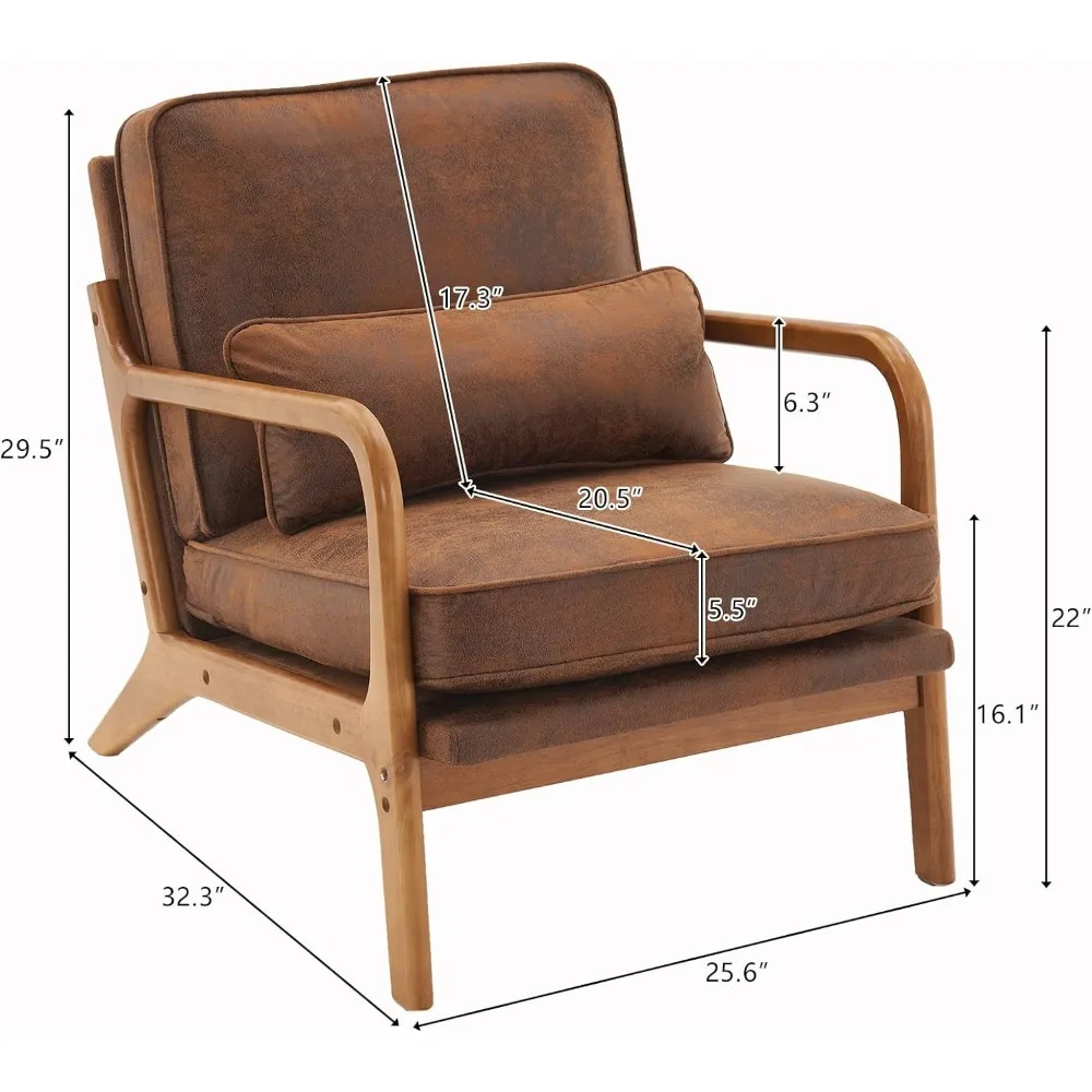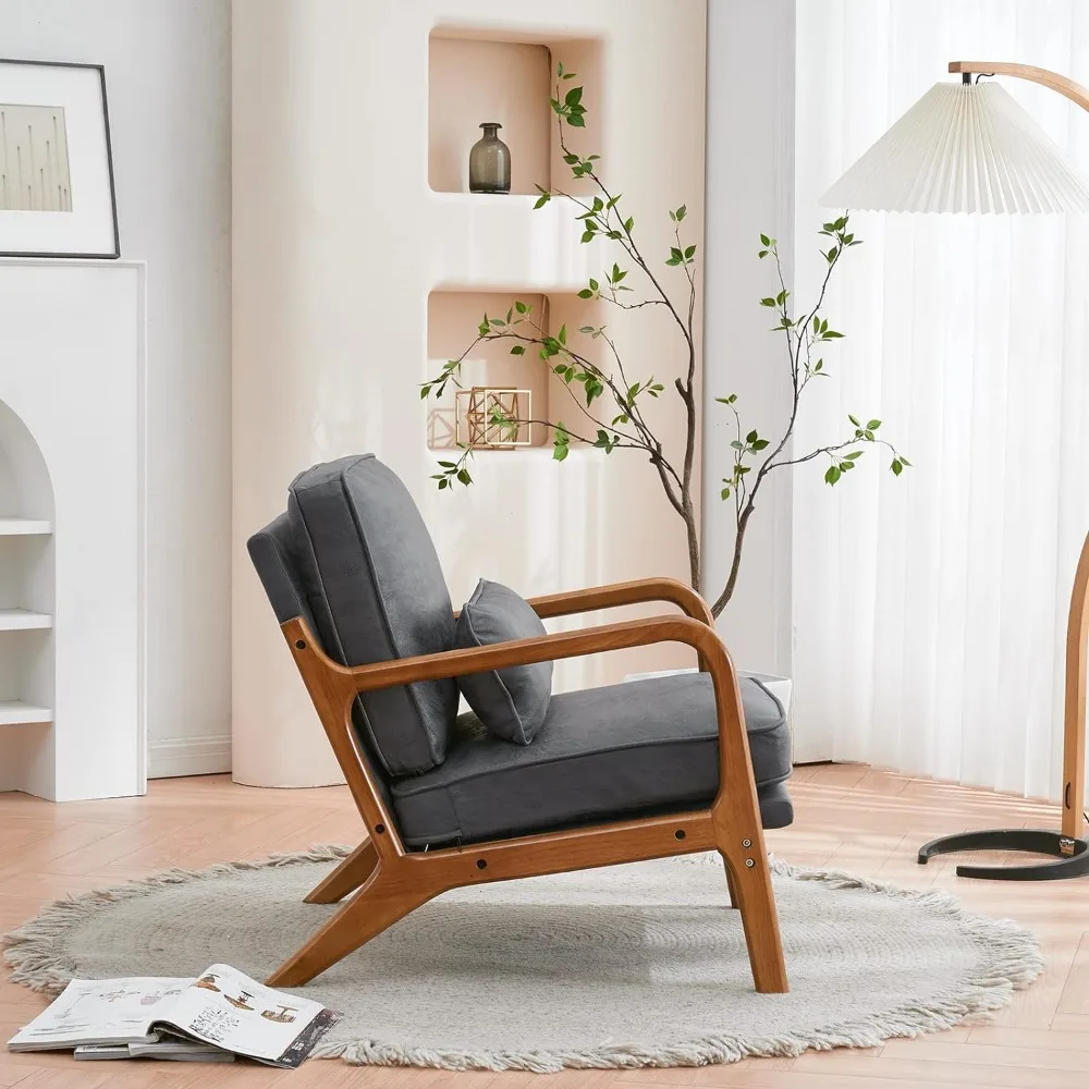 Karl Home Accent Chair Mid-Century Modern Chair with Pillow Upholstered Lounge Arm Chair with Solid Wood Frame & Soft Cushion