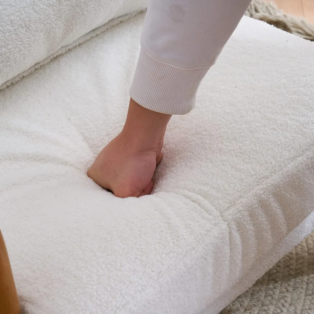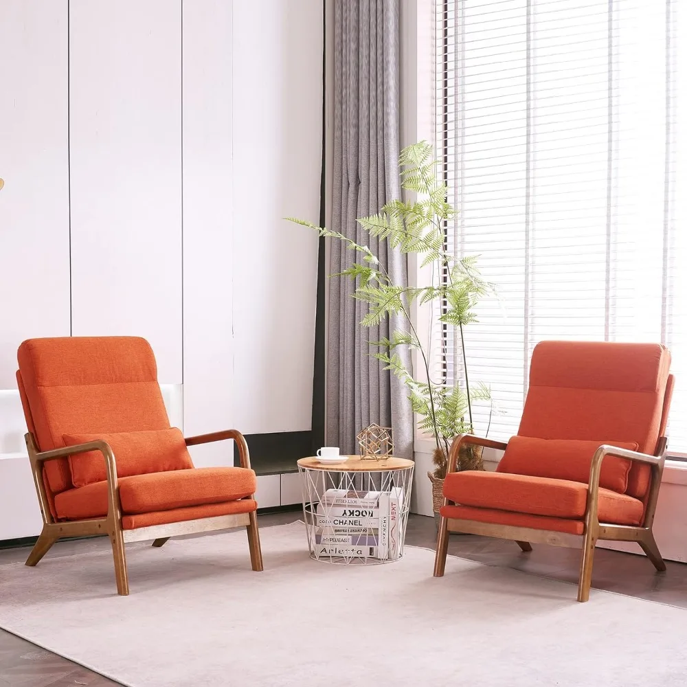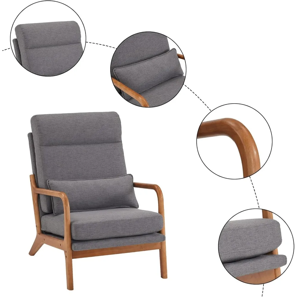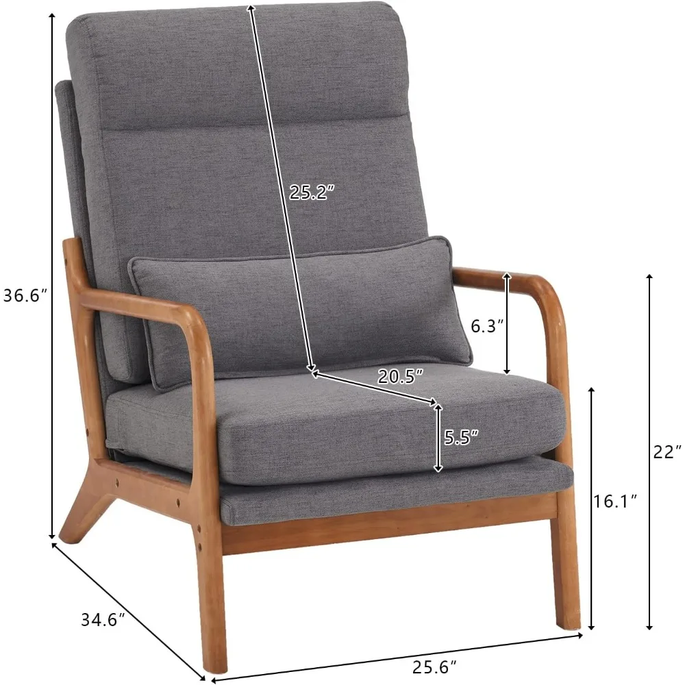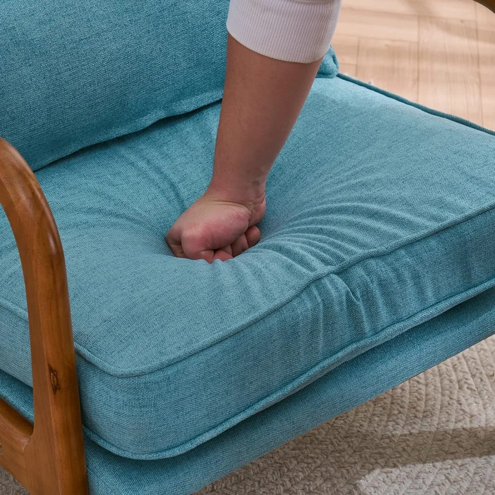 - HUMANIZED DESIGN - The ergonomic angle of the backrest and armrest is aimed for good relax when sitting and putting your arms on; Comfortable linen fabric with high-density sponge inside, enough back support, soft back pillow, and solid wood frame bring maximum comfort & cozy