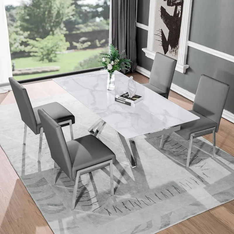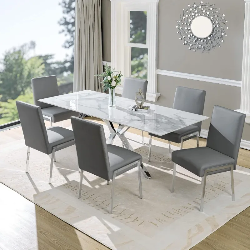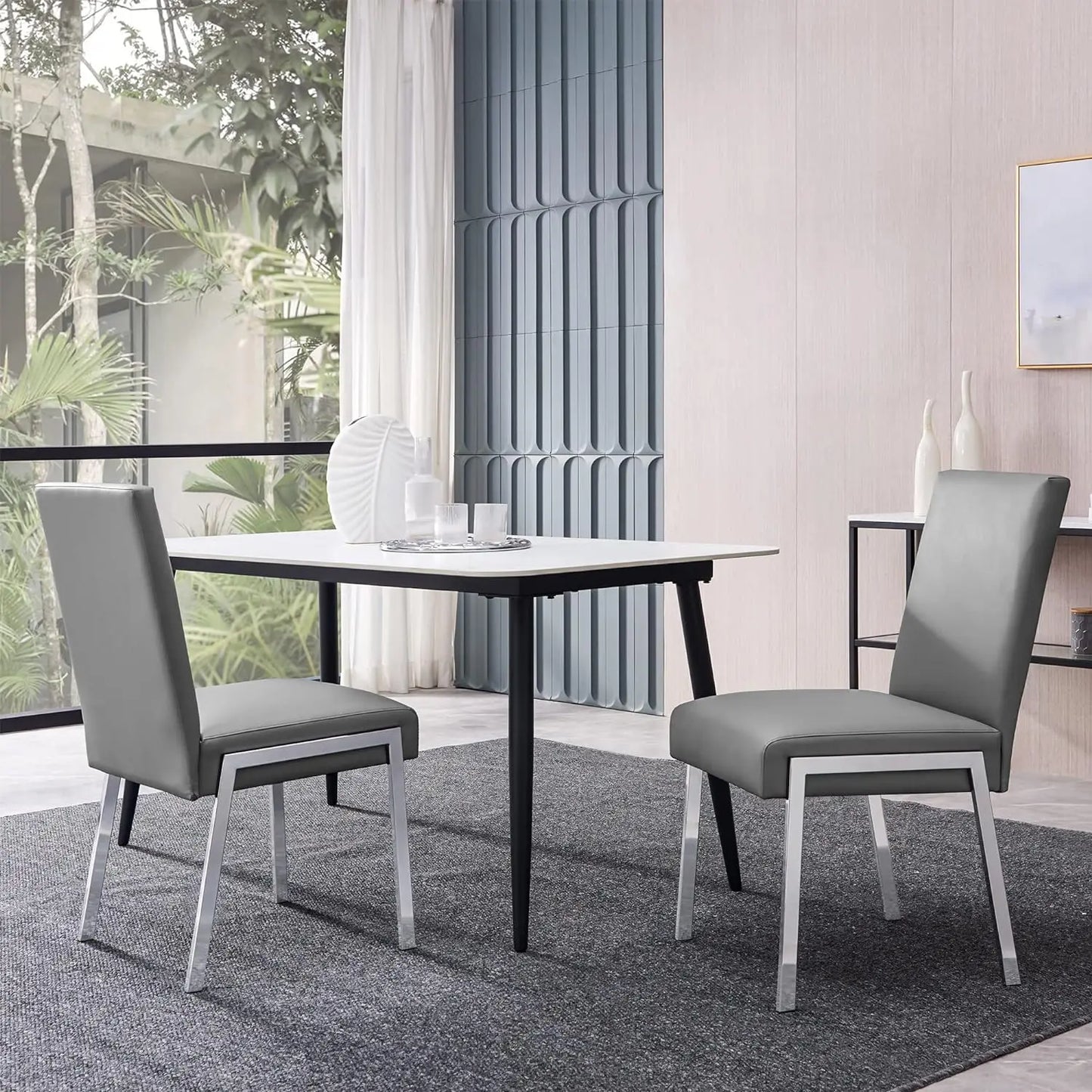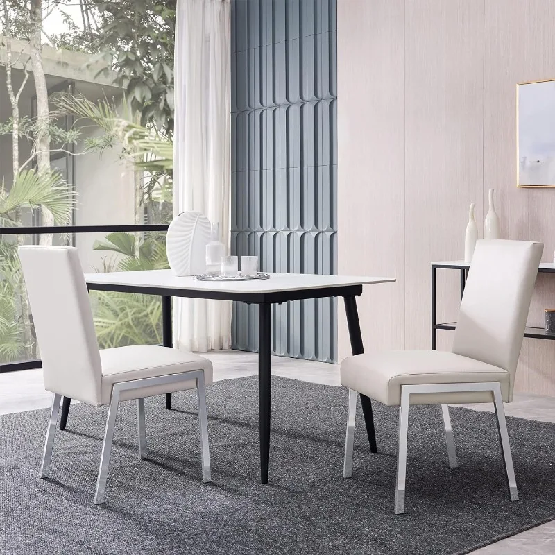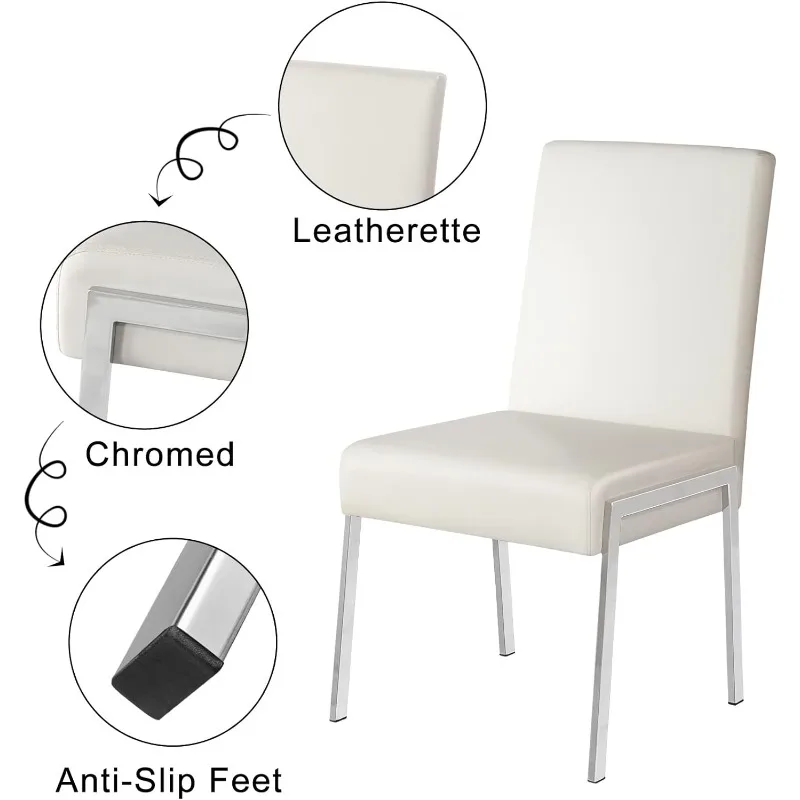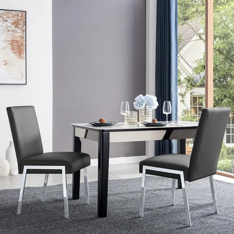 KithKasa Modern Faux Leather Upholstered Dining Chairs Set of 2, Accent Chairs with Chromed Metal Legs for Kitchen Dining Room
