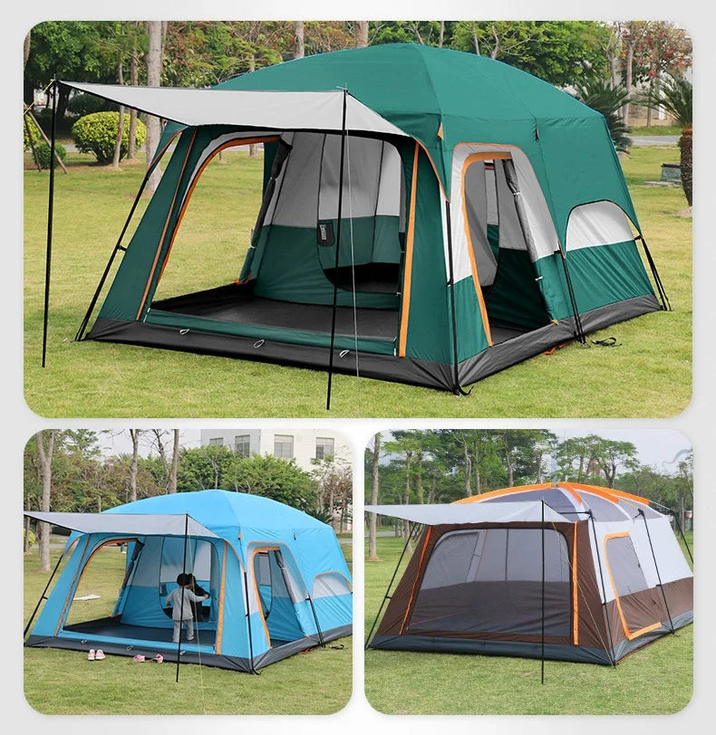 Large Luxury Double Layer Folding Family Camping Tent 4 Season 2 Room 1 Living Room Outdoor Oxford Cloth Waterproof Camping Tent