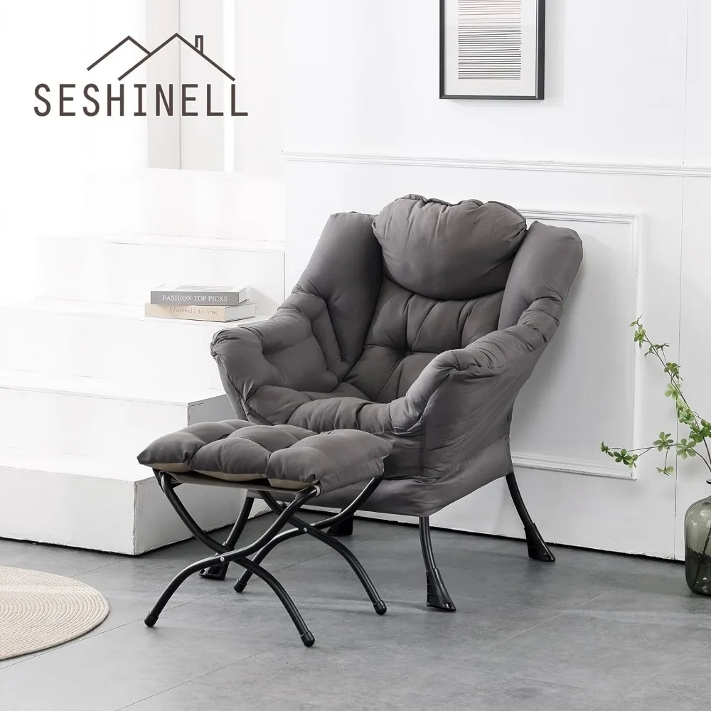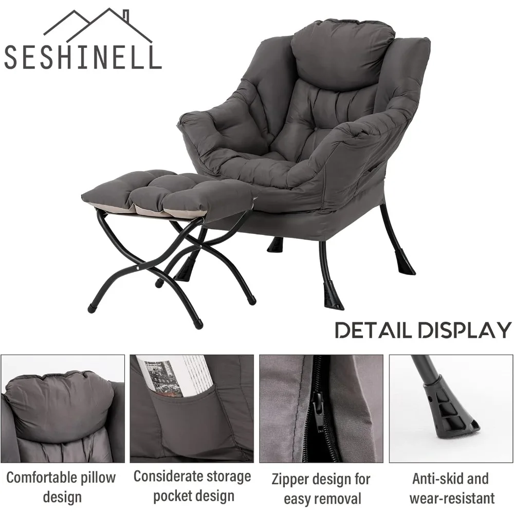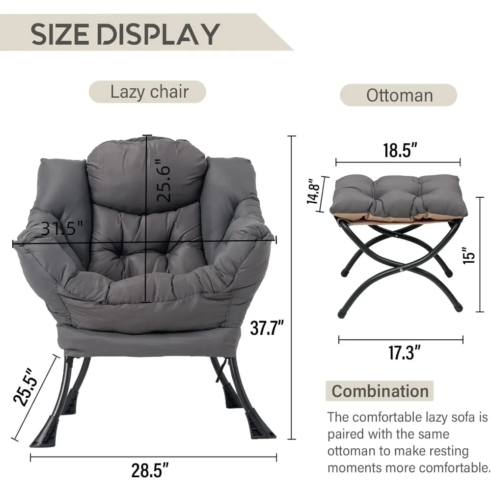 - LAZY CHAIR WITH OTTOMAN: The comfy lazy chair comes with a versatile folding footstool. You can also put the footstool next to the sofa and coffee table in the living room as a footstool to relax your feet, or even put it in the hallway or doorway and sit on a small stool to change your shoes.