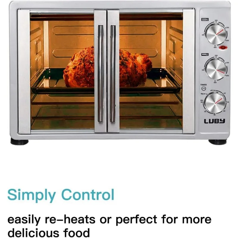 LUBY Large Toaster Oven Countertop, French Door Designed, 55L, 18 Slices, 14'' pizza, 20lb Turkey, Silver