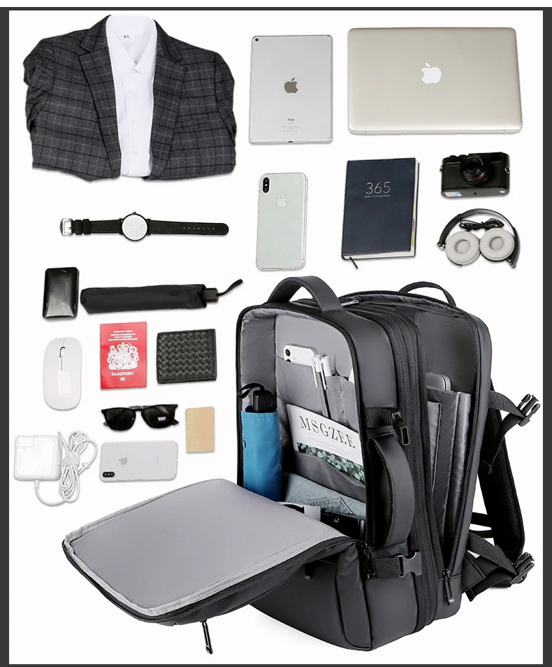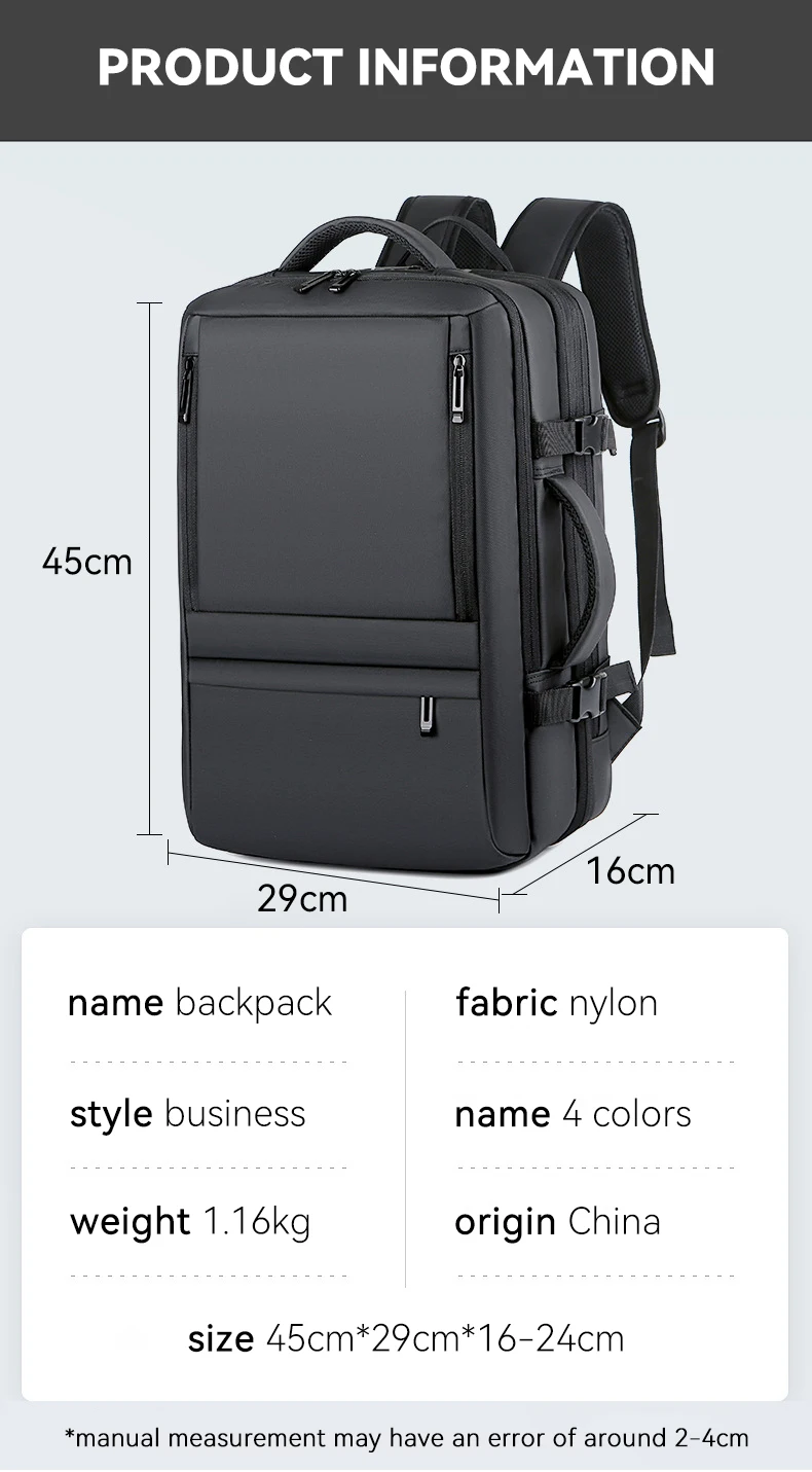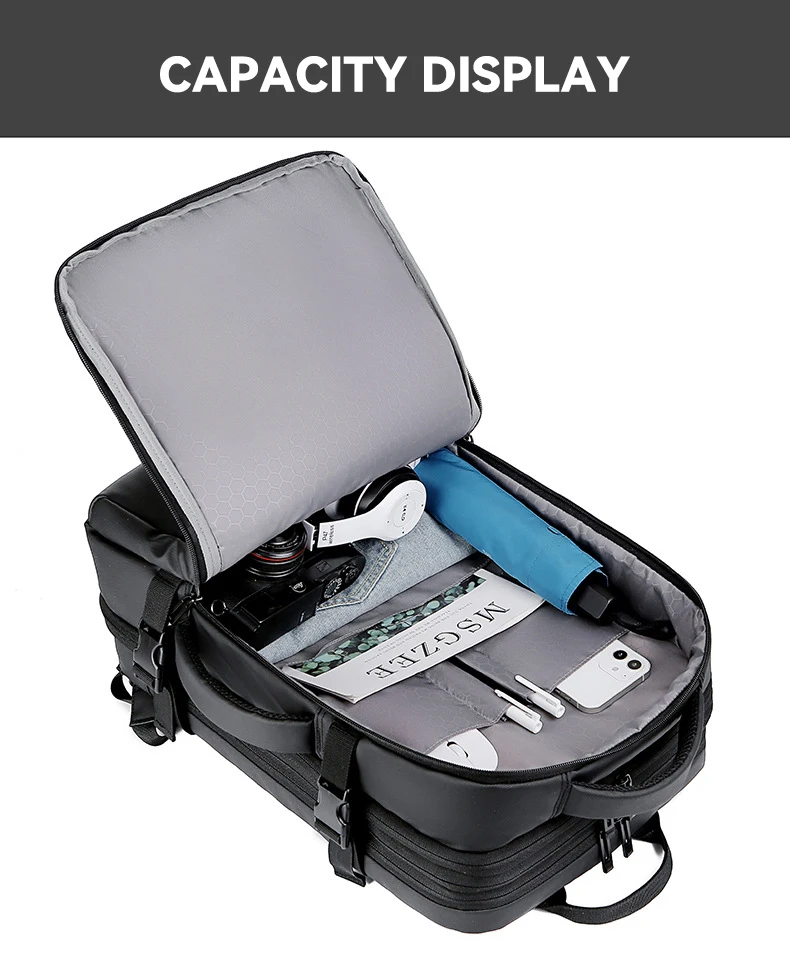Mens Large Capacity Backpack Expandable Male 17inch Laptop Bags Waterproof Travel Scalable USB Charging Back Pack