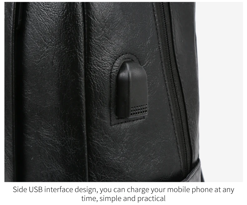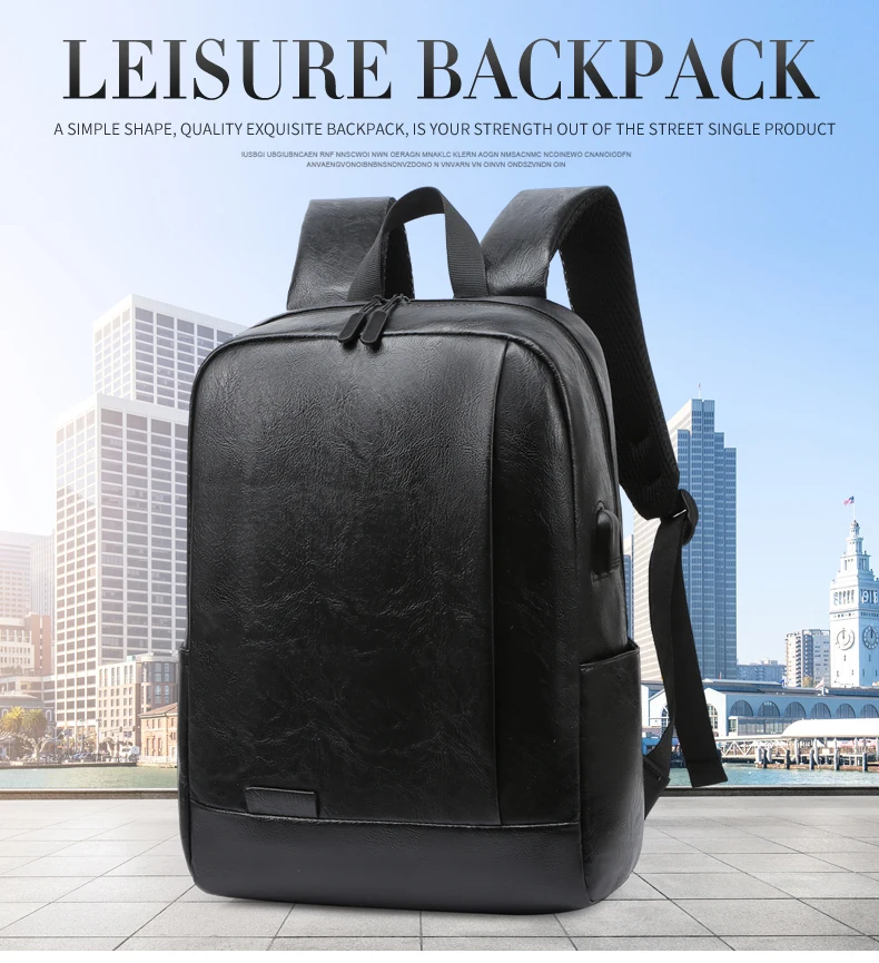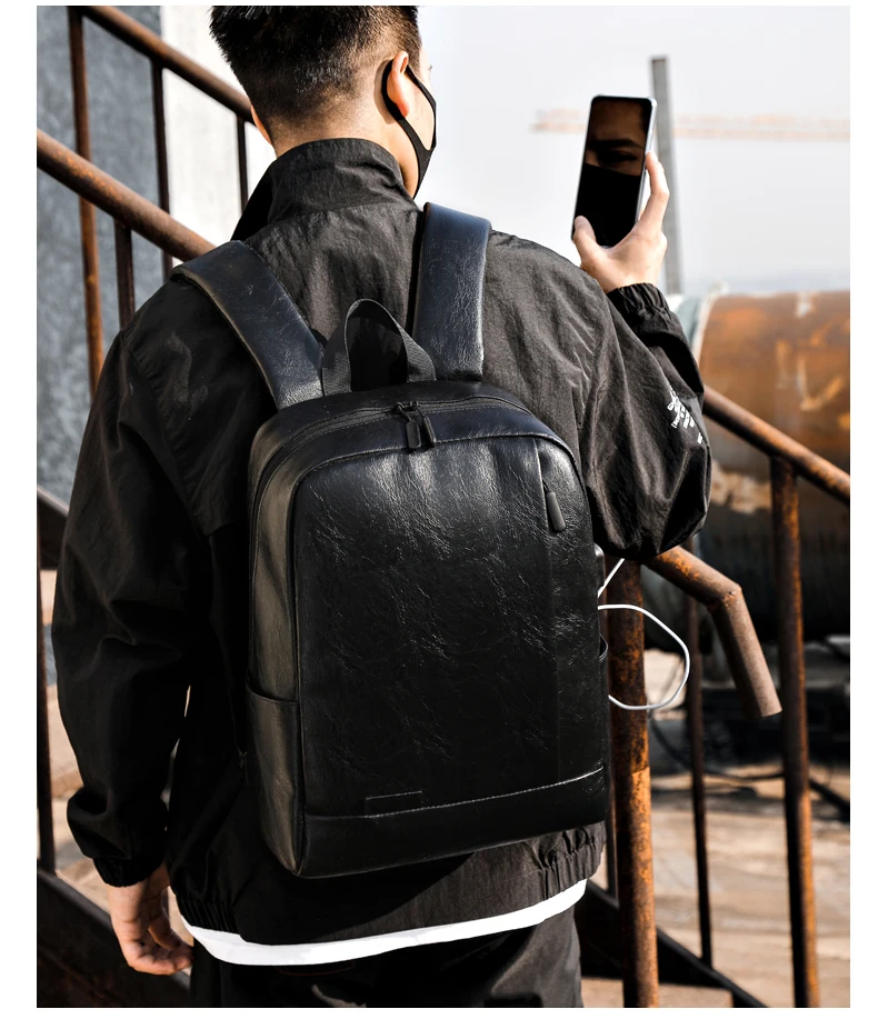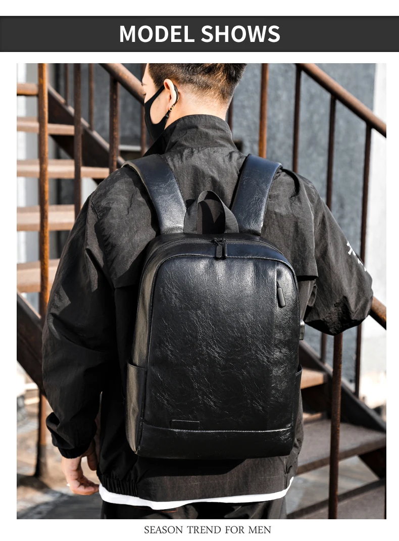 Product:2020 MEN'S PU leather Casual Fashion Waterproof USB Charging Backpack