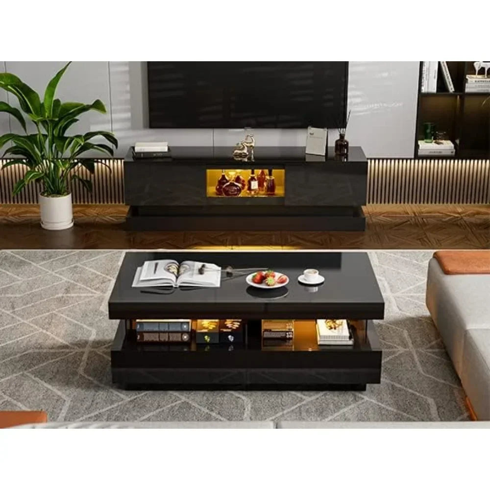 - 🟨 【2-IN-1 Table】-This table is coffee table and LED light combined into one product. So it can not only use as a table to put or storage thing, but also use as a LED light to illuminate your space. This gloss coffee table is widely applied in home as a perfect sofa table,office table etc. Its simple design is perfect for your office, store, living room, or bed room.