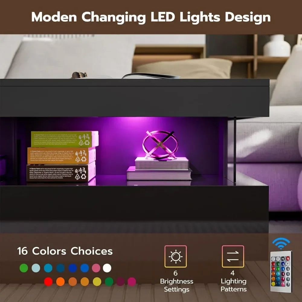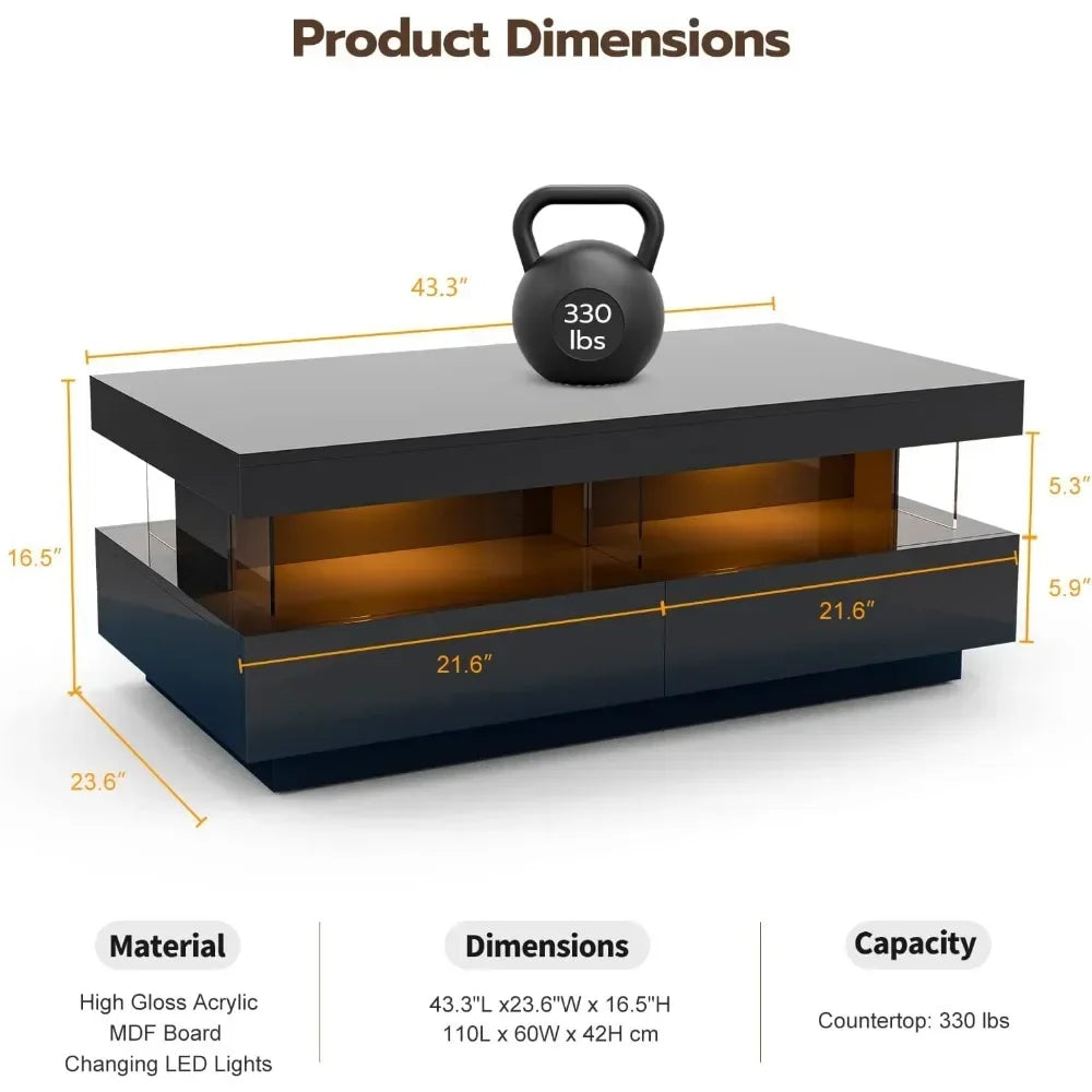- 🟥 【16 Colors LED Lights】-- Life needs a sense of ritual, colorful lights make your life relax and exciting. The LED coffee table includes 16 Colors, 6 Brightness Settings, 4 Lighting Patterns with remote ON/OFF and color control, low power consumption and stable performance.