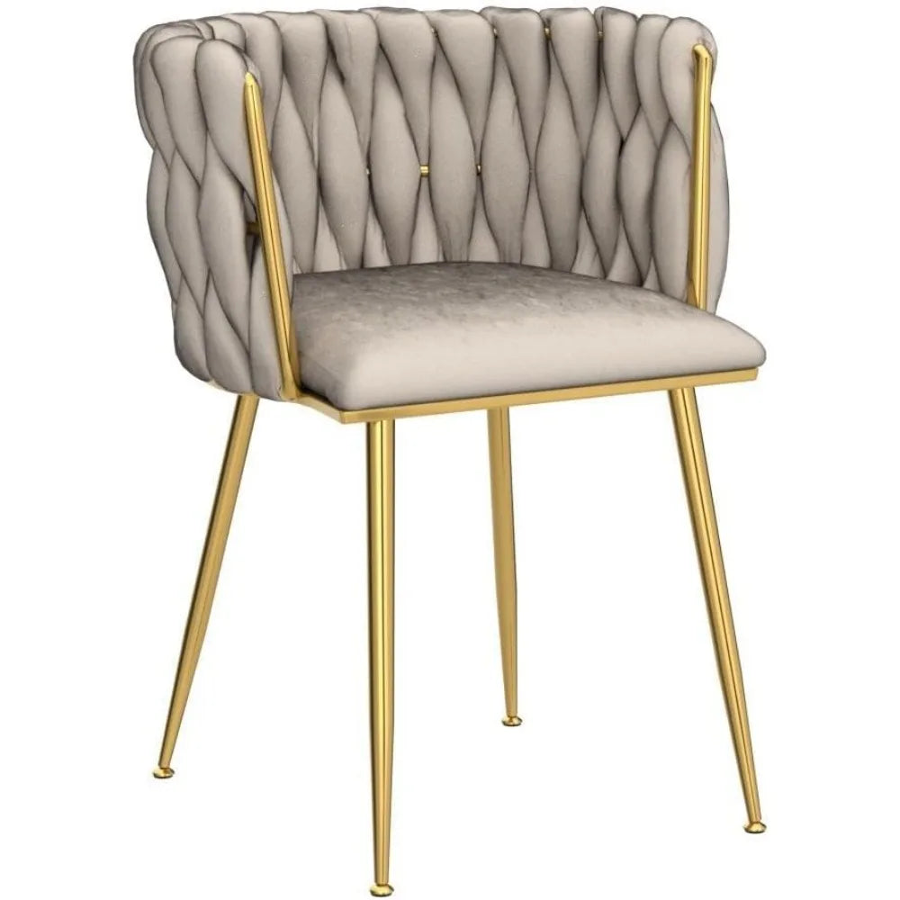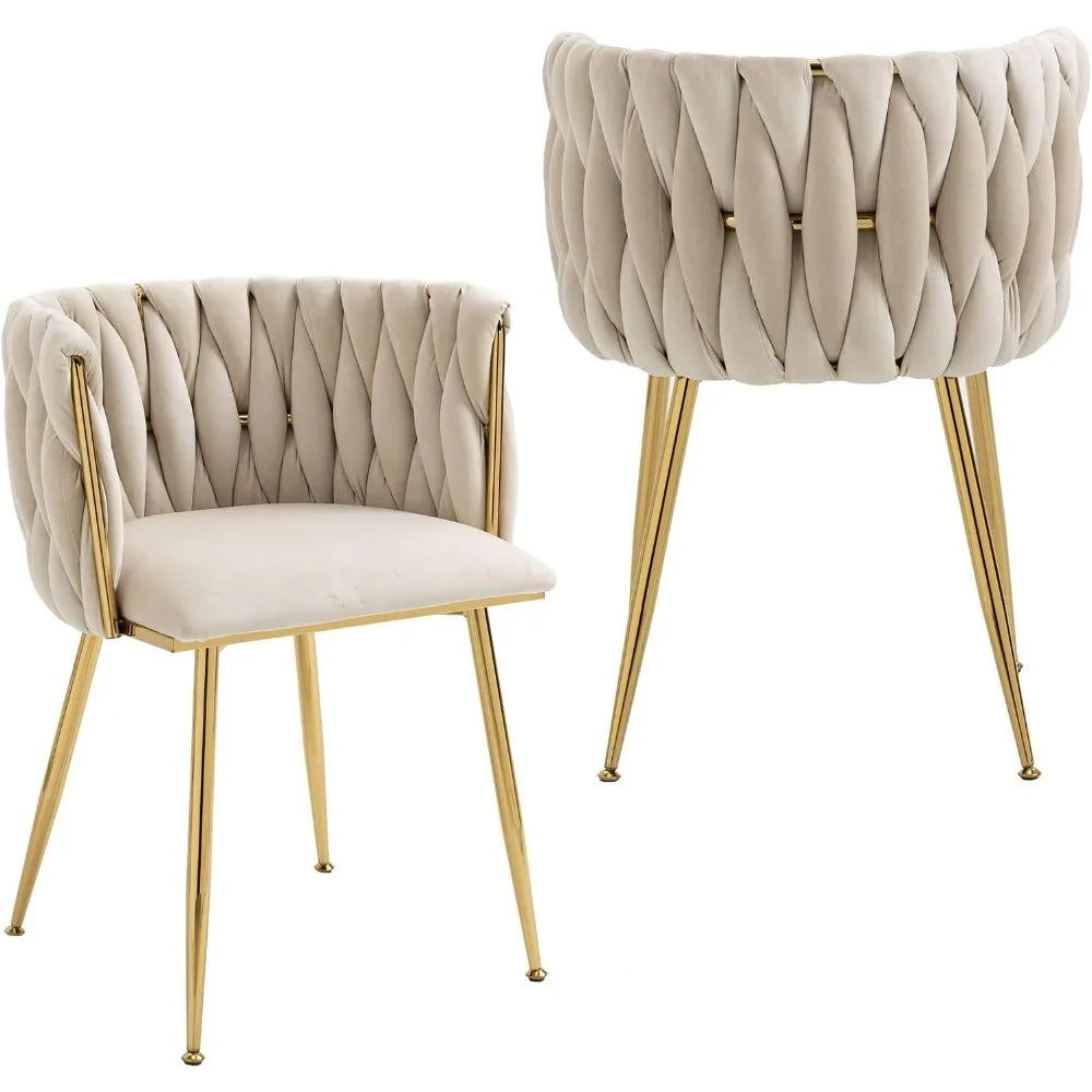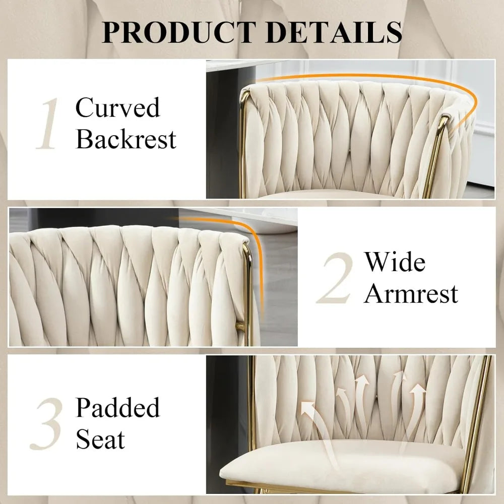 Modern Velvet Dining Chairs Set of 2 Hand Weaving Accent Upholstered Side Chair with Golden Metal Legs for Dining Room