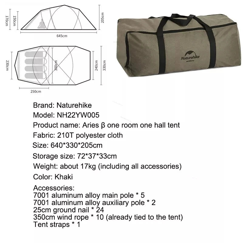 Naturehike Upgraded Aries One Room One Hall Tunnel Tent Leisure Constellation Tent Luxury Camping Tent Outdoor Large Space Tent
