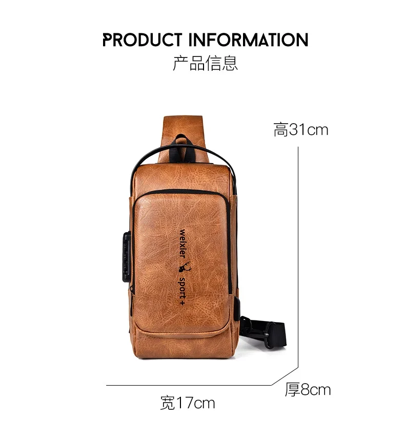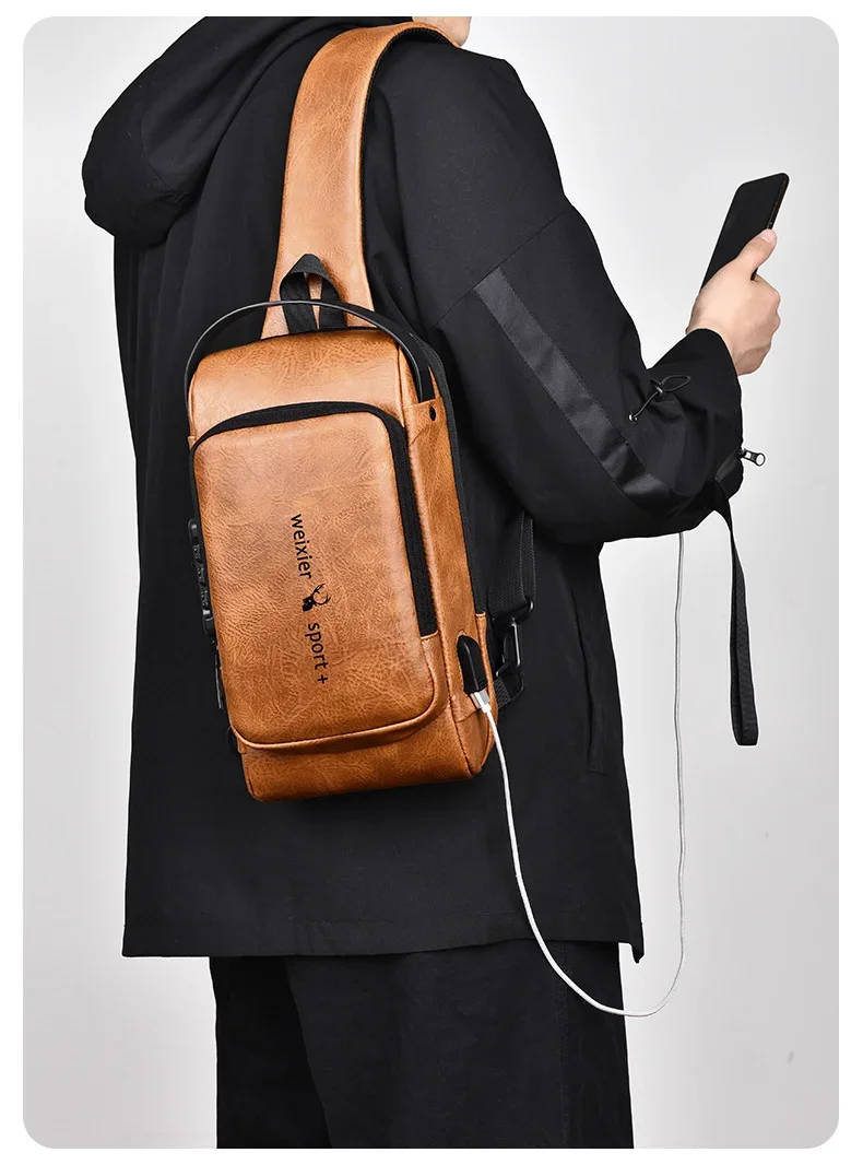 New Men Shoulder Bag USB Charging Sport Sling Pack Backpack Cross body Chest Bag Anti-theft Travel Male Side Messenger Bag bolso