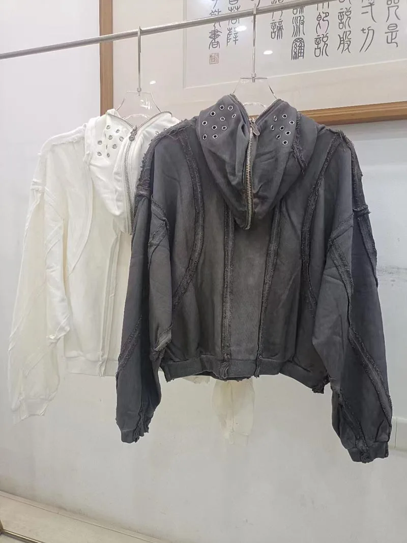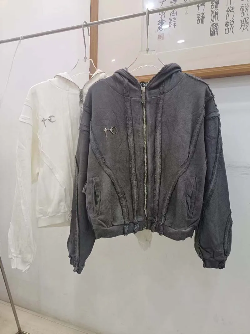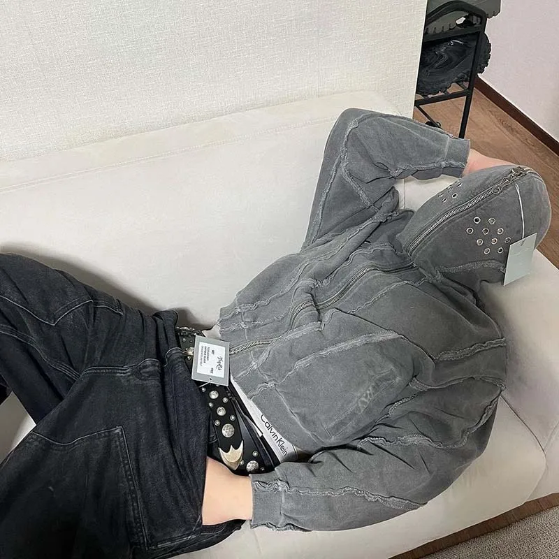 Oversized Hi Street Vintage Sweatshirt Men Harakuju Washed Streetwear Hoodies Coats