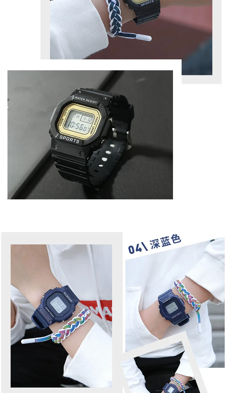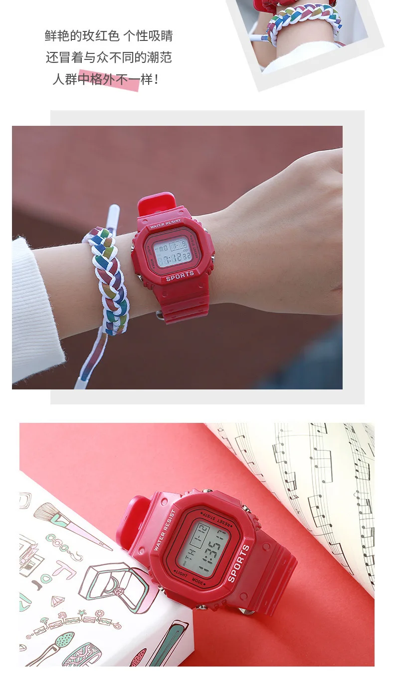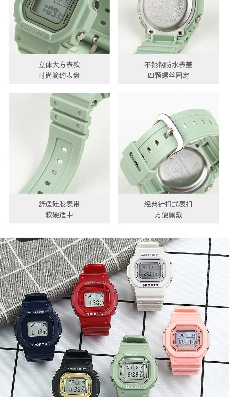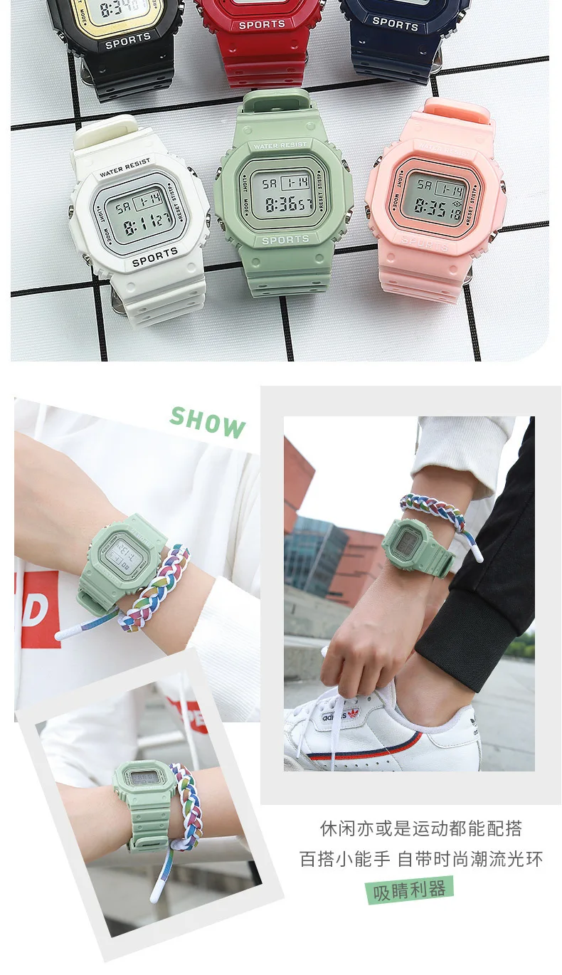 Sports Watch Boys Girls Student LED Electronic Watch Colorful Men Women Square Digital Watches Waterproof Rubber Clock