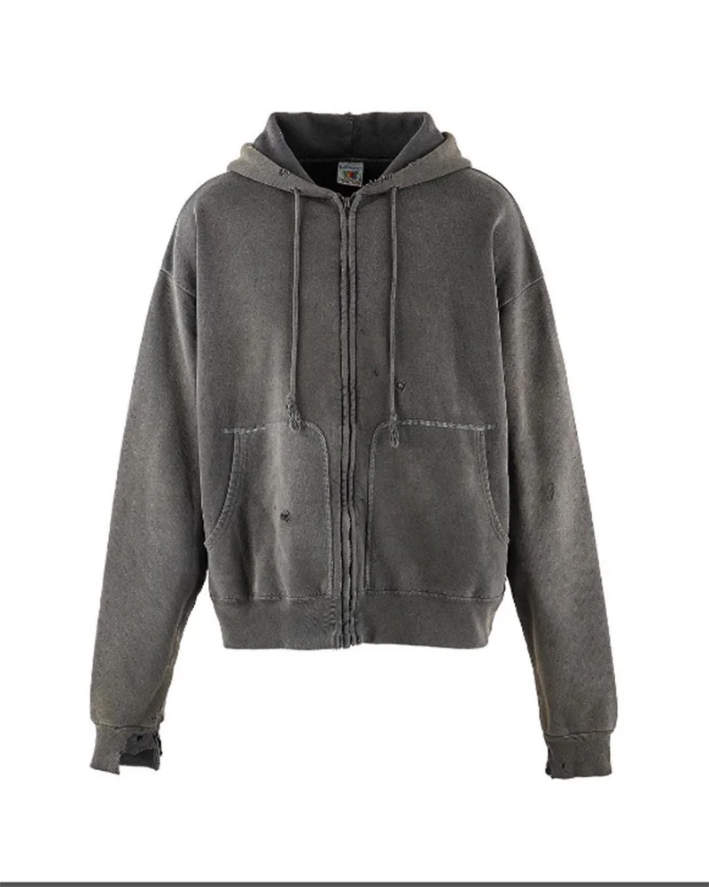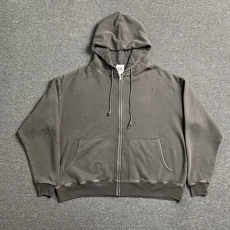 Top Quality Saint Zip Hoodies Men Woman Vintage Washed Do Old Damaged High Street Sweatshirts Hooded Pullovers