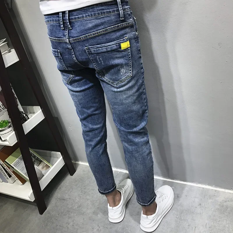 Trendy Men's Slimming Denim Jeans Spring/summer New Korean Style Washing Blue Tapered Pants For Social Youth