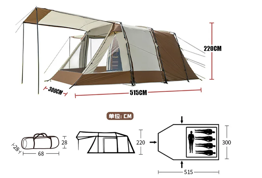 Tunnel camping tent luxury Camping one room two rooms family style large space for family