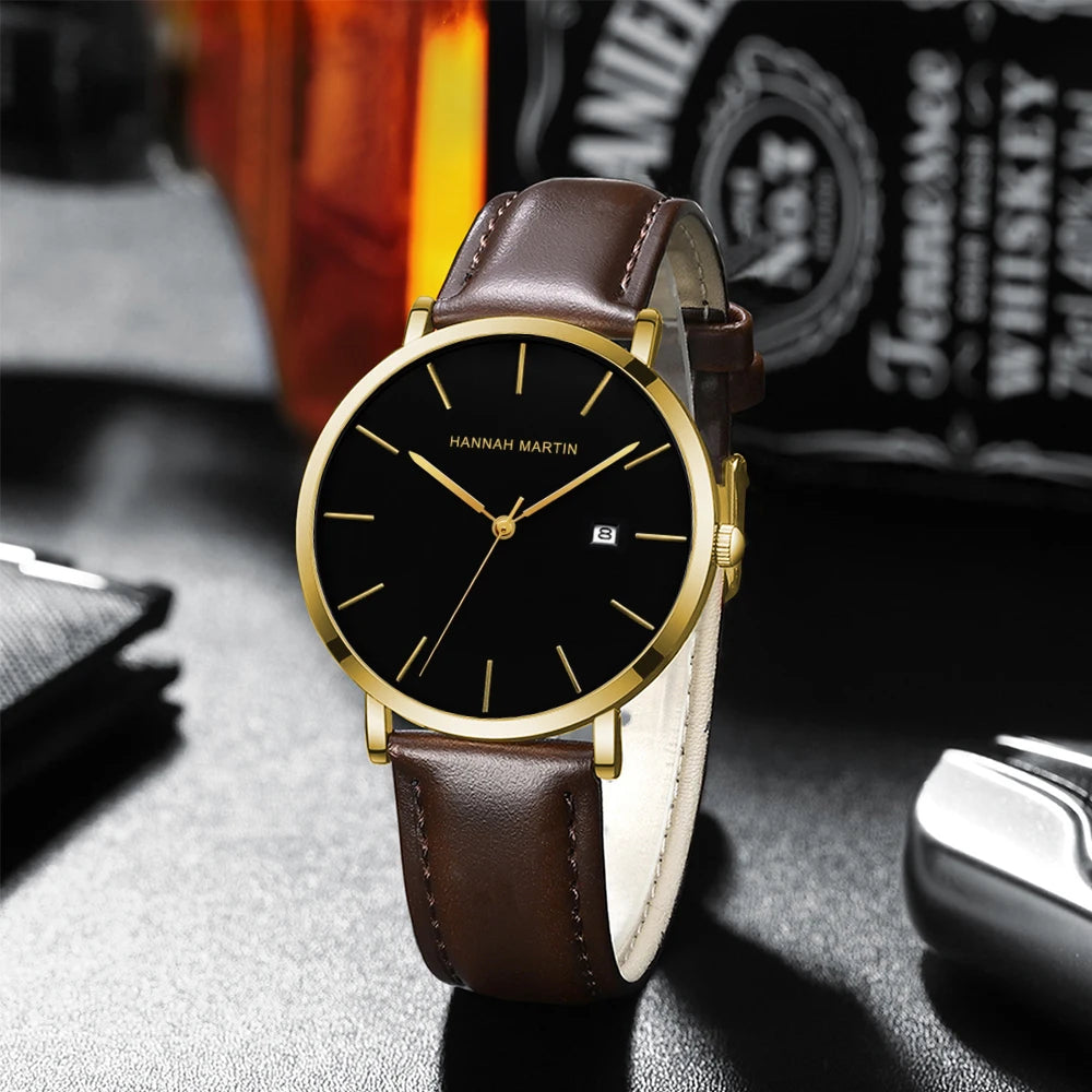 Watch For Men Business Style Genuine Leather Japanese Movement Gold Black Fashion Simplicity 3Bar Waterproof Quartz Men Watches