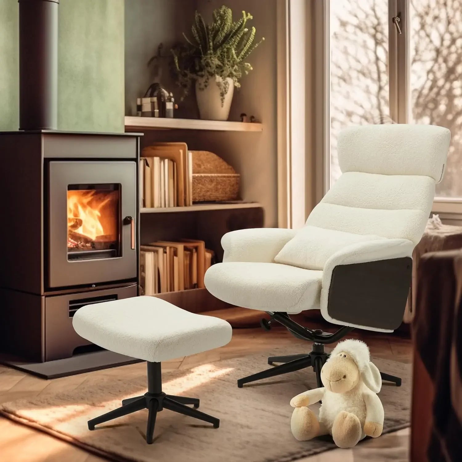White Sherpa Accent Chair with Ottoman, Rocking Chair with Adjustable Backrest, Wingback Nursery Glider Chair