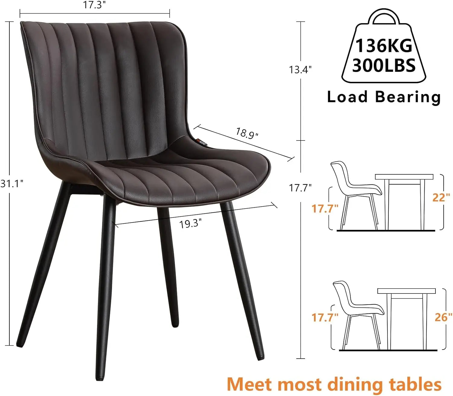 - š„ćProper SizećSeat height 17.7", Increased seat width 19.3", seat depth 18.9", back width 17.3", back height 13.4", total height 31.3". Package size: 27.56" W x 13.98" D x 19.09" H. The faux leather upholstered dining chairs are waterproof, scratch-resistant and very easy to clean. Simply wipe with leather cleaner or a damp rag.
