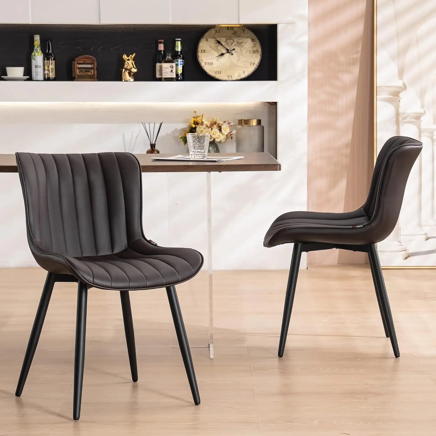 YOUNUOKE Brown Dining Chairs Set of 2 Upholstered Mid Century Modern Kitchen Chairs Armless Faux Leather Accent Guest