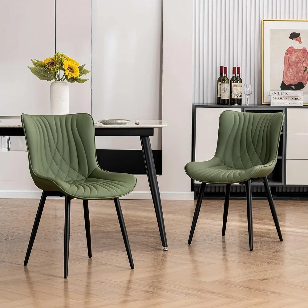 YOUTASTE Dining Chairs Set of 2 Upholstered Mid Century Modern Kitchen Dining Living Room Chairs Armless Faux Leather Accent